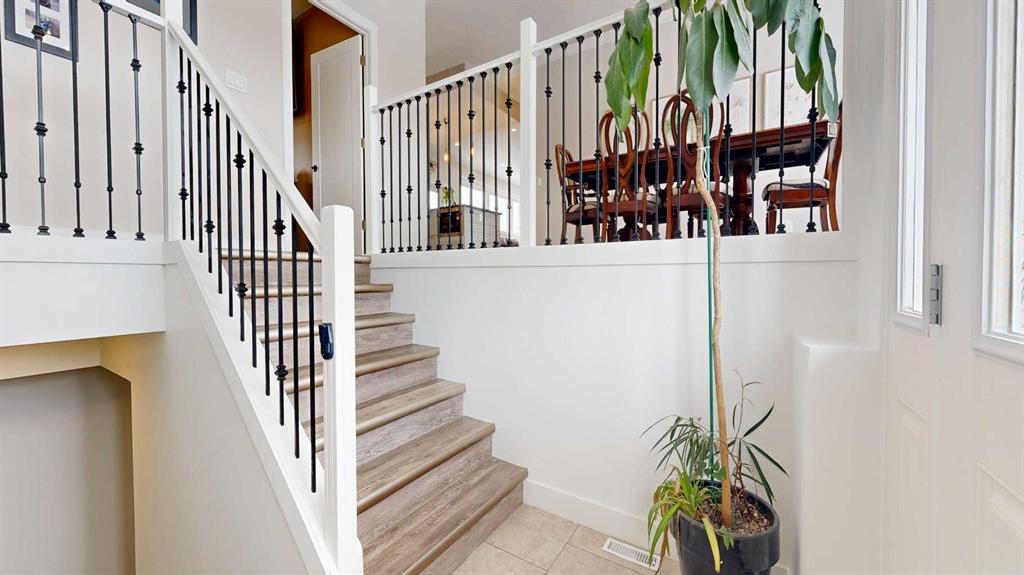 Heading toward the front entry, the stairwell leads you to the fully developed lower level. Downstairs, you’ll find three more spacious bedrooms, in-floor heating for year-round comfort, two large living areas that can be utilized to your liking, and another 4-piece bathroom. There’s also plumbing in place for a future wet bar, adding even more potential to the space.