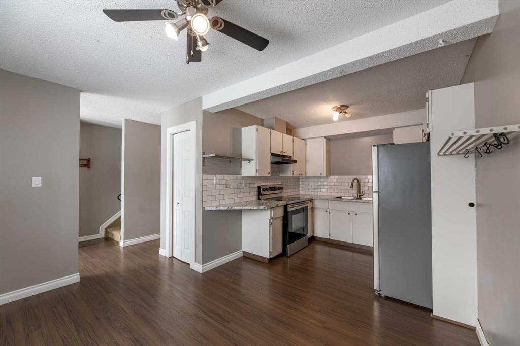 This Carriage Lane condo offers a developed walk-out basement along with a nicely updated kitchen including newer countertops and stainless appliances. There are 3 bedrooms upstairs with the master being very spacious and adjacent to the updated 4pc bathroom. On the main level, the living room is at the rear and offers an elevated view of the foothills along with a gas fireplace. At the front, the kitchen and dining room benefit from a functional layout and the main floor also has a half bath. The lower level is finished with a bright family room and a large storage room. Plus, the laundry room offers a folding counter and additional storage space. Outside, the fenced back yard has been set up with low maintenance in mind, featuring a large patio and paving stone walkway to the back gate. Carriage Lane condos are known for their great location and well-run association.