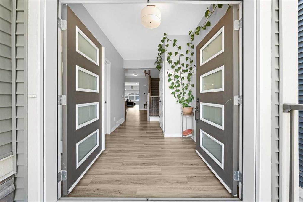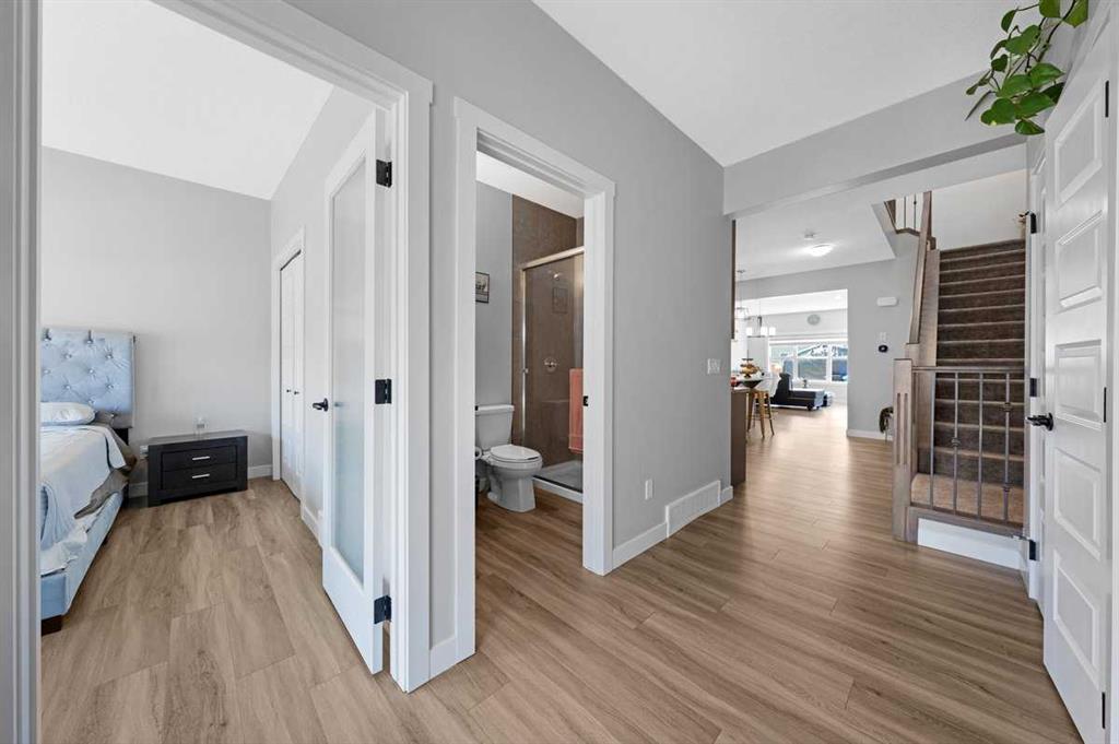 Welcome to your dream home in the vibrant community of Homestead in NE Calgary! This beautifully upgraded home offers a total of four bedrooms and three full bathrooms, including a main floor bedroom with a full bath—perfect for guests or multi-generational living. The main kitchen is complemented by a convenient spice kitchen, ideal for culinary enthusiasts. Step inside through the elegant double door entry and experience the spacious layout featuring a luxurious master suite with double doors, a full ensuite, and a large walk-in closet with custom MDF shelving. Two additional generously sized bedrooms, each with their own MDF-shelved closets, share a common full bathroom. A large bonus room provides extra living space, perfect for a media area or playroom. The upper level also includes a side-by-side laundry for added convenience. The unfinished basement boasts 9-foot ceilings and a separate rear entry, offering excellent potential for future development. A large garage pad at the back completes this exceptional property. Don’t miss the chance to own this beautiful home in an excellent location.