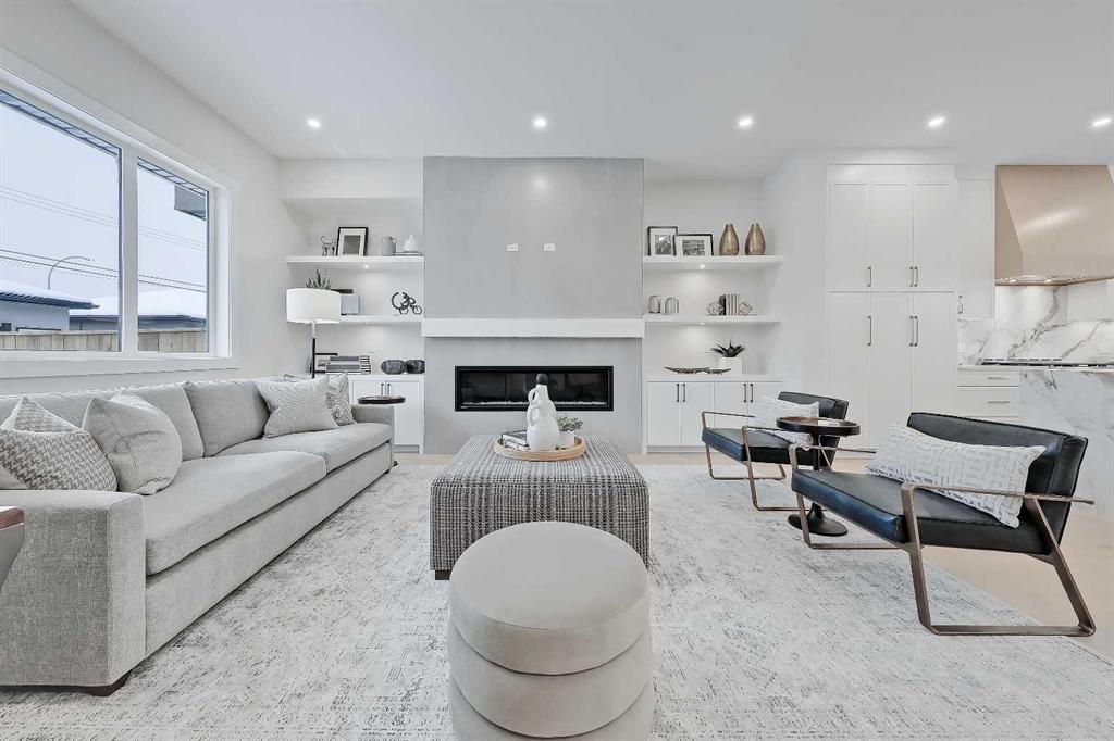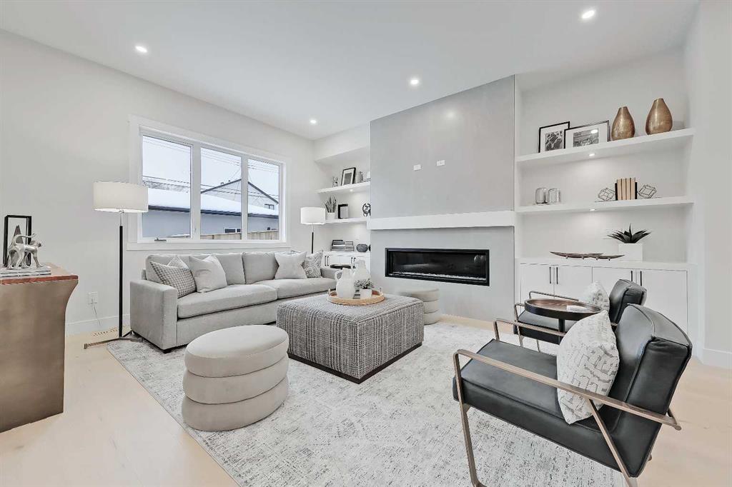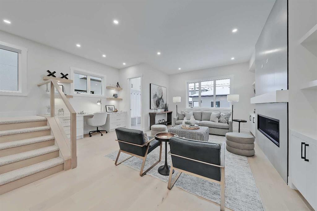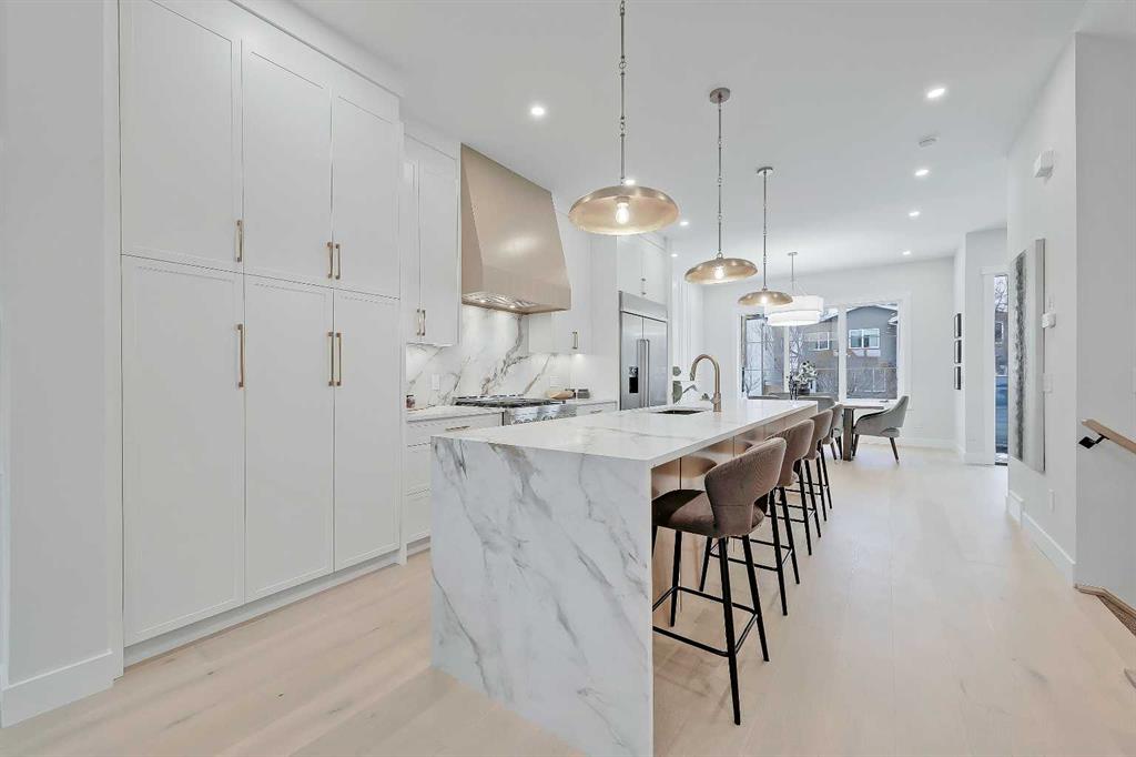 Set within sought-after KILLARNEY, this modern semi-detached home delivers light-filled interiors, a thoughtful layout, and elevated finishes that create a space that feels calm, intentional, and easy to live in. With parks, schools, and local favourites just minutes away, this is a home that supports both busy schedules and slower moments. The front entry immediately sets the tone. A welcoming foyer features CUSTOM BUILT-IN STORAGE with a bench and hooks, keeping bags, shoes, and coats neatly tucked away. Just off the entry is a stylish main floor POWDER ROOM, with quartz skirt, custom framed mirror perfectly placed for guests and day-to-day convenience without interrupting the flow of the living space. From here, the main floor opens into a clean, open layout. The kitchen sits at the centre of the home and anchors the entire level. A LARGE QUARTZ WATERFALL ISLAND creates a natural gathering point, complemented by integrated appliances, warm wood accents, and sleek cabinetry. The dining area flows easily alongside the kitchen, making it ideal for hosting or everyday meals without breaking connection. Toward the rear of the home, the living room feels comfortable and intentional. A LINEAR FIREPLACE with built-in shelving adds warmth and structure, while a BUILT-IN DESK tucked just off the living space creates an ideal work-from-home setup, homework station, or command centre that stays visually connected without taking over the room. At the back of the main floor, an ENCLOSED MUDROOM offers smart separation and functionality. Lockers and storage keep things organized, while direct access leads out to the backyard FULLY FINISHED GARAGE W/EPOXY FLOORS, making transitions effortless year-round. Upstairs, the primary suite stands out with a VAULTED CEILING and FEATURE WALL that add volume and visual interest, creating a true retreat feel. The ensuite balances style and function with a freestanding tub, glass shower, double vanity, and carefully selected finishes that feel calm and refined. Secondary bedrooms are generously sized and easy to furnish. The upper landing adds unexpected flexibility, with enough space for a DESK, READING NOOK, or SMALL PLAY AREA, allowing this level to adapt as needs change over time. Downstairs, a spacious rec area is complemented by a DEDICATED HOME GYM complete with sports flooring and a full wall mirror. A WET BAR with floating shelves and wine fridge enhances the entertaining potential, while a bedroom and full bathroom provide comfortable space for guests or extended stays. The home is set in the heart of KILLARNEY, known for its walkability and strong local amenities. Just minutes from 17TH AVE SW, you’re close to neighbourhood favourites like Blanco Cantina & Merchants, along with nearby schools including Killarney School and Holy Name School. Optimist Athletic Park & the Killarney Aquatic & Recreation Centre are close by, while quick access to Crowchild Trail and Bow Trail keeps downtown easily within reach. *Photos from show suite