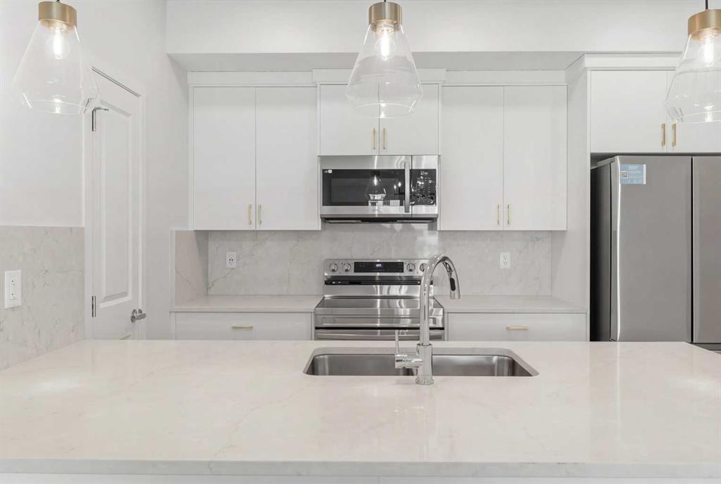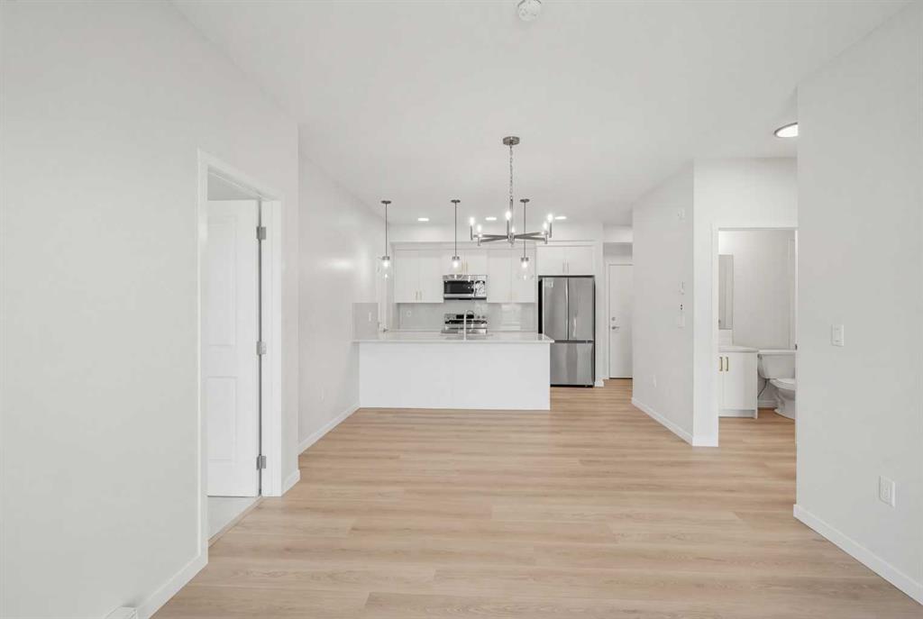 Welcome to this Stunning Community of Belmont! If you’ve been searching for a home that feels like home the moment you walk in, this 2 bedroom, 2 bathroom condo in Belmont is it (built 2024 by Cedarglen). With 9’ ceilings, big tripleglazed windows, and a bright, open layout, this low rise unit is perfect for modern, move-in ready living. The kitchen is a dream quartz countertops, sleek cabinets, stainless steel appliances, and a large island with breakfast bar seating. Whether it’s quick breakfasts, casual meals, or entertaining friends, it all flows seamlessly into the dining and living space. Sliding doors open to your private balcony with glass railings and a BBQ gas line making it your own little outdoor escape all year round. Both bedrooms are spacious, the primary with its own 4 piece ensuite, and the second bedroom conveniently next to a full bathroom with a soaker tub. In-suite laundry, titled underground parking, and air conditioning make everyday living effortless and comfortable no matter the season. Belmont is a growing, walkable community with parks, playgrounds, and green spaces just steps away. Shops, restaurants, and everyday amenities are nearby, and exciting developments are coming including: YMCA, public library, shopping plaza, and the future 210 Avenue SW LRT station. This makes it perfect for families, first-time buyers, downsizers, or anyone looking for a connected, vibrant neighborhood. The building is pet friendly, rental friendly, and move-in ready. Book your showing today and see why Belmont living is something special.