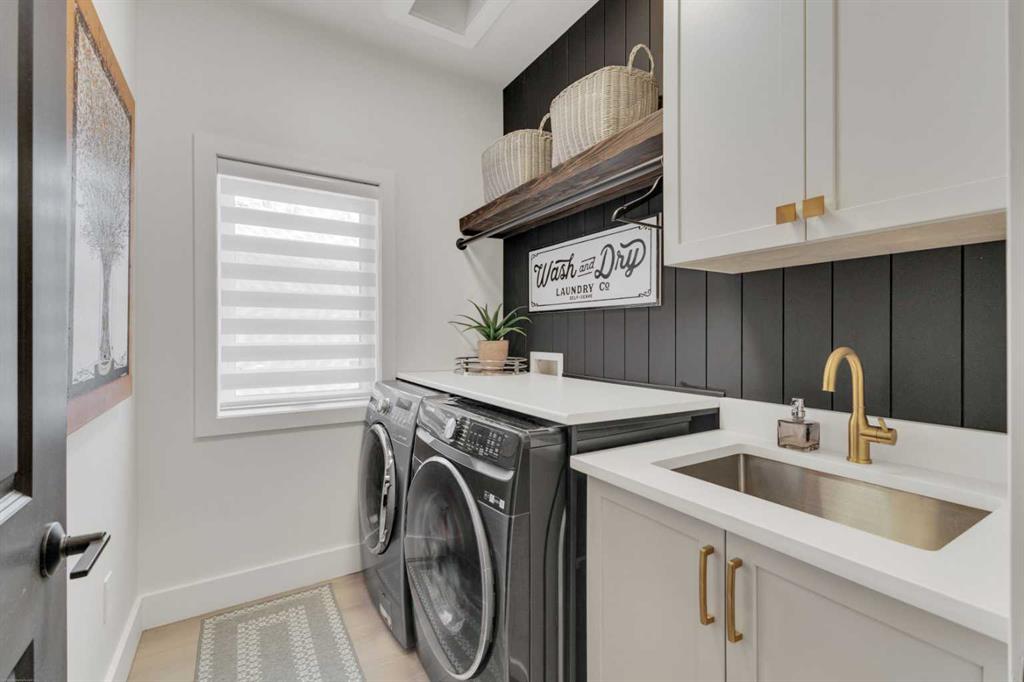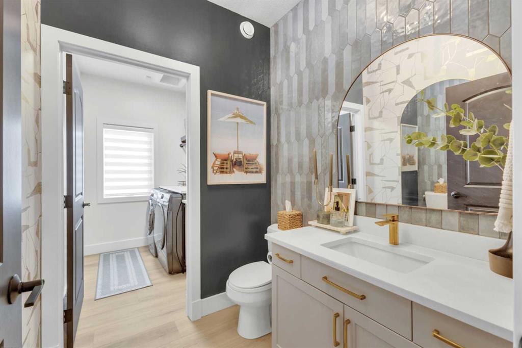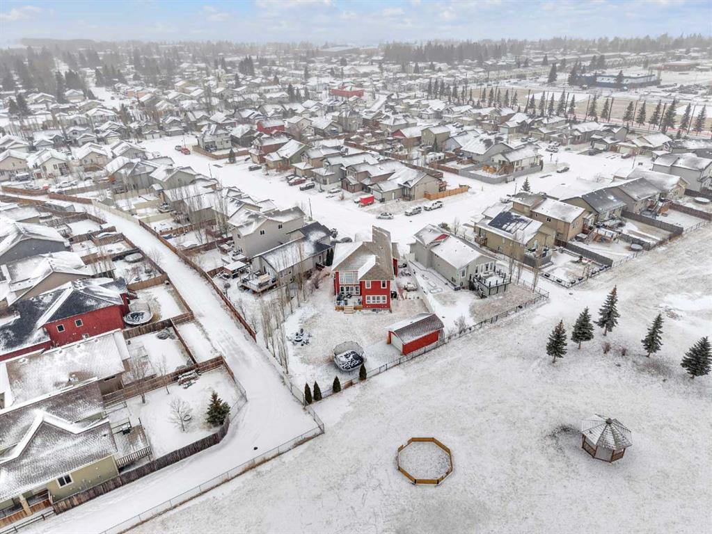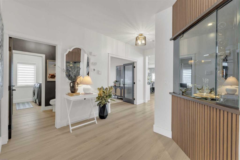 RARE OPPORTUNITY! Fully renovated luxury home on a massive 10,300+ sq ft lot—one of the largest in Sylvan Lake—featuring an oversized heated garage PLUS a second rear garage/shop. With ~3,900 sq ft of exquisitely developed living space, this home blends custom design, high-end craftsmanship, and functional elegance. Every detail has been thoughtfully upgraded, including designer wide plank flooring, custom millwork, imported finishes, and Emstone lighting that highlights the home’s architecture. From the covered front porch with new composite decking to the spacious foyer with custom built-ins, a locker/bench area, enclosed illuminated wine display, and walk-in front closet, this home delivers wow factor at every turn. The main floor impresses with soaring ceilings and a chef’s dream kitchen featuring a large waterfall quartz island, ceiling-height two-tone cabinetry, custom range hood, upgraded appliances including double wall over, dishwasher (2025), brand new fridge (2026), and a 5-burner gas stove. The dining area with brick feature wall opens to the new deck, perfect for entertaining, while the living room features a redesigned fireplace, two-storey vaulted ceilings, and feature lighting highlighting a custom staircase and wall designed for art or display. A private main floor office with French doors, a renovated powder room with quartz counters and tile feature wall, and a separate laundry room with custom cabinetry complete the main level. Upstairs, the primary suite is a luxurious retreat with tray ceiling and a spa-inspired ensuite with marble flooring, freestanding tub, walk-in glass shower with black-framed door, quartz counters, and modern black/brass fixtures, plus a walk-in closet with pocket door. The upper level also offers a vaulted bonus room with custom wood beam detail, two large bedrooms with oversized closets, a beautifully finished bathroom, and new carpet. The fully developed basement includes in-floor heat, a newly finished walk-up wet bar, two bedrooms, and a massive rec/games room. Recent upgrades include a serviced furnace (2026) and newly installed 5-ton A/C. Outdoors, enjoy all-new landscaping, a brand new deck, and a side patio with stamped concrete, plus rear alley access with ample space for trailers or equipment. The oversized heated garage offers tall ceilings with lift potential, while the second rear garage/shop adds unmatched versatility. Perfectly located just minutes from the lake for boating and year-round recreation, and backing onto a school for added convenience, this one-of-a-kind home offers luxury, space, and lifestyle in one exceptional package.