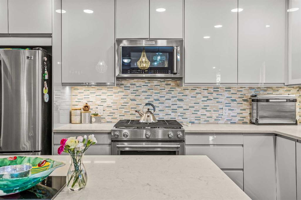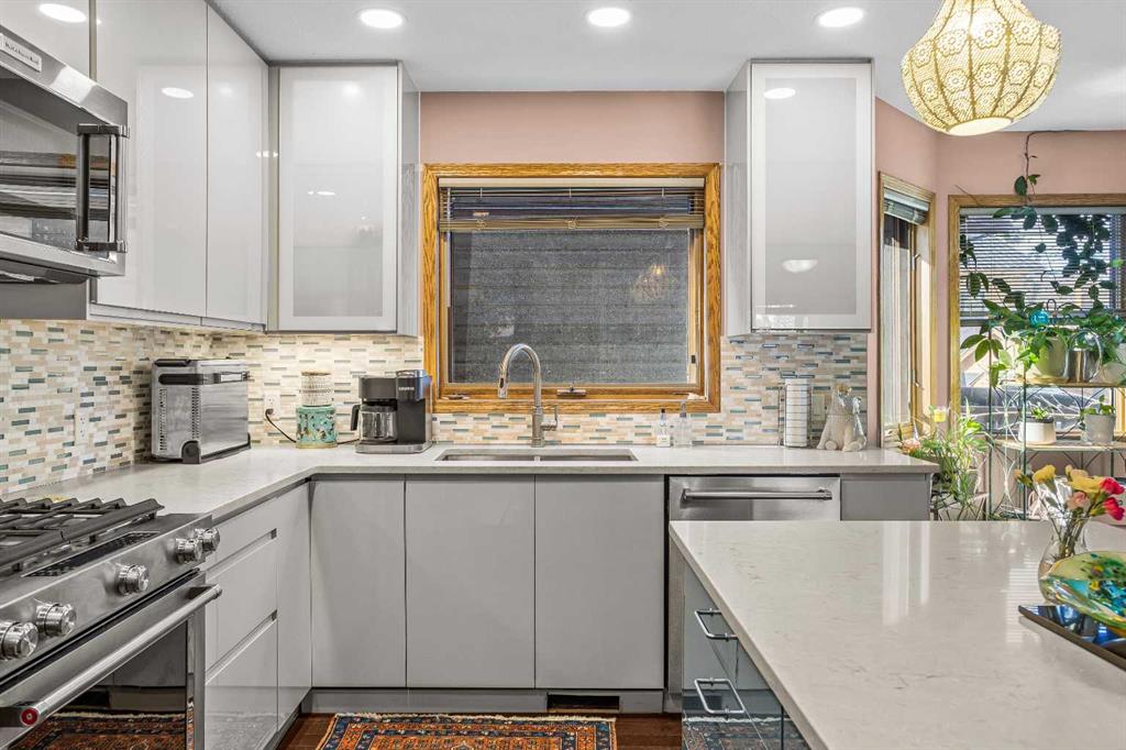 The lower level suite offers a bright and functional living space with its own kitchen, stainless steel appliances, in-suite laundry, and ample storage. Large windows bring in plenty of natural light, complementing the open-concept living and dining area, two bedrooms, and a 3-piece bathroom. With a separate entrance, this level is ideal for multi-generational living or added versatility.