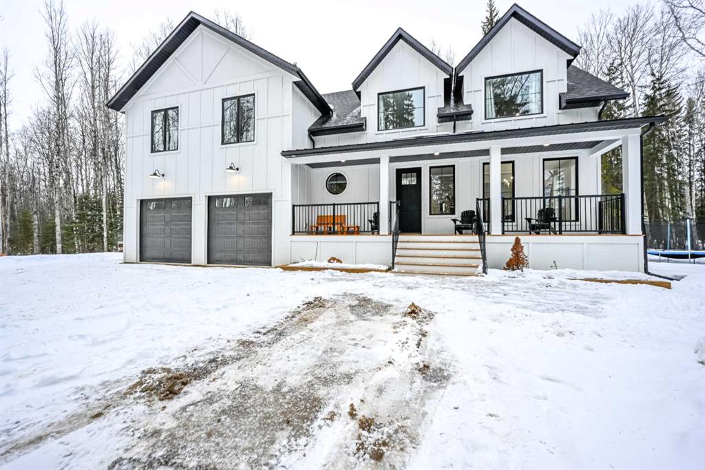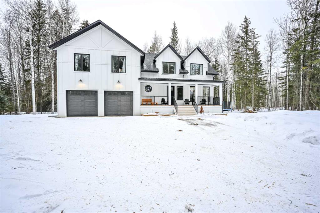 Serenity.......Treed Privacy......Luxury....Welcome To The Banks At Spring Creek! Start your tour of the property and you will immediately notice the TREED PRIVACY as you wind your way up to this stunning home. Luxurious HARDIE BOARD, BLACK ACCENTS, and a welcoming FRONT PORCH will make you feel right at home. Step into true acreage elegance and enjoy the warmth of the LARGE ENTRY ROOM w/ 2-PIECE BATHROOM for convenience. As you make your way into the main floor living space the endless features are sure to have you dreaming of what life in this home could look like.....SOARING FLOOR TO CEILING STONE WOOD FIREPLACE which meet SHIPLAP CEILINGS, MASSIVE WINDOWS FOR ABUNDANT NATURAL LIGHT & PANORAMIC VIEWS OF THE PROPERTY, A BANQUET STYLE FORMAL DINING SPACE....& the kitchen.....MAGAZINE WORTHY......MASSIVE STONE COUNTERTOP ISLAND, EXQUISITE COUNTER TO CEILING CABINETRY.....CUSTOM BACKSPLASH....GAS STOVE...MASSIVE FARM SINK...& yes a SPACIOUS BUTLER\'S PANTRY FOR EXCEPTIONAL STORAGE & UTILITY! Completing the main floor is access to the REAR DECK overlooking the tremendous yard space, perfectly located LOCKER ROOM & STORAGE AREA w/ a stylish HERRINGBONE TILE FINISH, & access to the TRIPLE GARAGE. Explore the top floor and be amazed by the SPRAWLING LOFT AREA exceptional for a second living & entertaining space. Continue on to the ENORMOUS PRIMARY BEDROOM featuring DUAL WALK IN CLOSETS & A 5 PIECE ENSUITE for ultimate relaxing offering a STYLISH EXPANSIVE TILE SHOWER, DUAL SINKS, AND STAND ALONE SOAKER TUB. The upper floor also offers 2 ADDITIONAL BEDROOMS, UPSTAIRS LAUNDRY, A 4 PIECE BATHROOM with DUAL SINKS excellent for guests and families alike, and a BONUS HIDDEN OFFICE. Did I mention CITY WATER & CENTRAL AIR for ultimate comfort! Welcome to acreage living at its finest....WELCOME HOME!