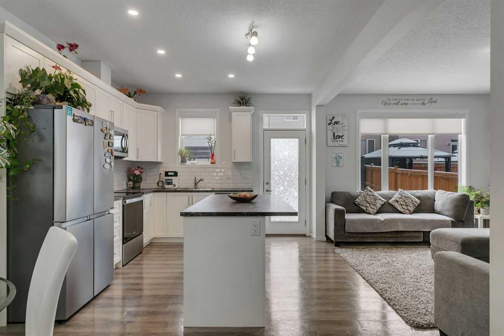 Welcome to 821 Windrow Green SW, a beautifully designed home offering modern finishes, generous living space, and exceptional functionality for today’s lifestyle. Situated on a quiet street with charming curb appeal, this home features a sun-filled south-facing backyard with upgraded landscaping, perfect for relaxing or entertaining. Step inside to an open-concept main floor designed for both everyday living and hosting guests. The stunning kitchen showcases crisp white cabinetry, stainless steel appliances, a classic white subway tile backsplash, and abundant counter space, along with a large center island with eating bar—ideal for casual meals or gathering with family and friends. The bright living room is filled with natural light from the large south-facing windows overlooking the backyard, creating a warm and inviting atmosphere. The main floor is completed with a convenient powder room, additional closet storage, and direct access to the double attached garage. Upstairs, the thoughtful layout provides privacy and comfort with a spacious bonus room separating the primary suite from the two secondary bedrooms. The expansive primary retreat features a large walk-in closet with ample shelving and hanging space, along with a luxurious 5-piece ensuite complete with dual sinks, generous counter space, and a deep soaker tub. An upper-floor laundry room adds to everyday convenience. Throughout the home you’ll appreciate hard surface flooring—including the stairs and upper level—modern vinyl plank flooring, central air conditioning, knockdown ceilings, and transom windows above exterior doors for added natural light. Room sizes are generous, offering comfortable living for families of all sizes. Additional highlights include an oversized hot water tank ideal for larger families and partial basement development featuring a fourth bedroom, providing flexibility for guests, a home office, or growing families. Just a 3-minute drive to Windsong Heights School (K–9) and within walking distance to Osborne Park, perfect for outdoor activities and green space enjoyment. Conveniently situated near the 8th Street and 40 Avenue overpass, as well as other major roadways, the property provides seamless access throughout the city. Public transportation, shopping centres, and additional parks are all close by, making everyday living both easy and connected.