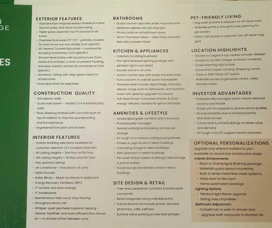 Residents will have the opportunity to join the member\'s only Aspen Club, a private amenity hub with collaborative workspaces, lounge areas, a state-of-the-art fitness centre and spin studio, yoga and games rooms, and beautifully designed rooftop gathering spaces. Plus, Aspen Village will feature an Urban Village with over 60,000 sq. ft. of retail and services. Residents will enjoy pedestrian-friendly streets lined with boutique shopping, cafés, dining, wellness studios, daycare, medical services, and everyday conveniences—creating a truly connected and vibrant community atmosphere.