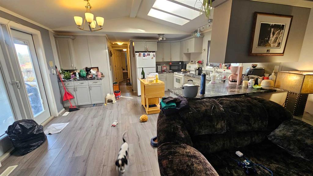 Enjoy comfort and convenience in this open concept home with three bedrooms two and a half bathrooms. Featuring vaulted ceilings and a spacious, fenced backyard in a quiet end of town on its own lot. The deck gives lots of room for morning coffees or meeting with friends. The home has vinyl siding, windows, and skirting, giving it a finished look. There are new water pipes, furnace and hot water tank 3 years ago. This might be the future home you are looking for.