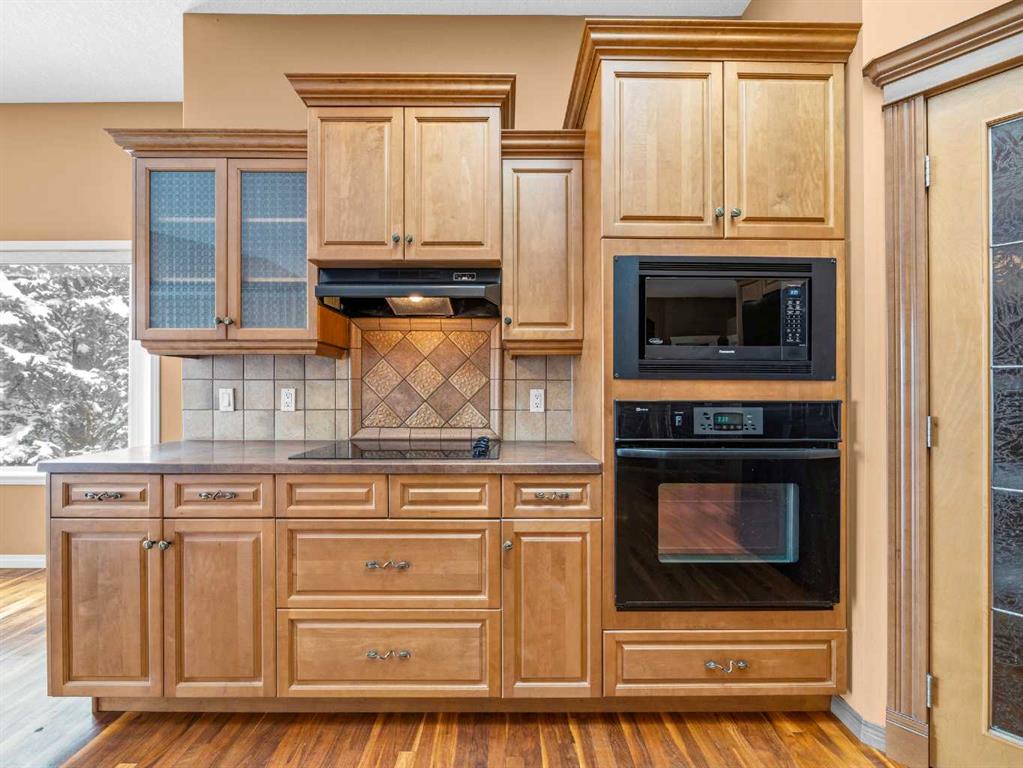 Come home to desirable Valley Ridge! A large bungalow on a corner lot without sidewalks to shovel located in a quiet cul-de-sac overlooking the ravine! The front driveway is upgraded aggregate concrete, the stunning stucco exterior home sits on a landscaped yard with trees, and perennial shrubs and flowers. Excessive parking includes a front double wide driveway, attached double garage and extra gated parking out back that can be used for a small boat or RV. The welcoming open floor plan showcases 10\' ceilings, built in speakers, skylights and gorgeous hardwood flooring! The kitchen has plenty of storage with step in pantry, cooktop, separate wall oven and the island overlooks the spacious dining room. Sliding doors open to the covered deck and beautiful yard with a gazebo! The living room showcases a tray ceiling, cozy gas fireplace and custom hardwood build-ins. Relax in the primary wing with an enormous 5 pc ensuite with jet tub and stand alone shower. There is a flex room for a den, office, formal dining or use as you wish! Enjoy the convenience of main floor laundry! Head down to the fully finished basement boasting 9\' ceilings! Enjoy a grand recreation room, two sizable bedrooms, another den and a full bathroom. There is extra dedicated storage room and more space in the utility room. Valley Ridge is an upscale community with paths, river access, ravine views and is an easy escape to the mountains! And if you like golf, Valley Ridge Gold Course meanders through the community! Book your private showing today!