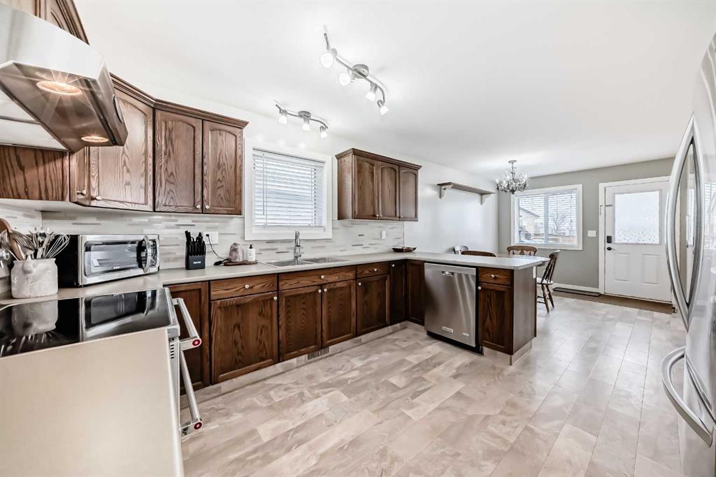 Welcome to this beautifully maintained bi-level home in the heart of Penhold, offering exceptional value, space, and functionality for the whole family. Situated on a HUGE, fenced lot in a quiet, family-friendly crescent, this property is just a short walk to schools, shopping, and restaurants—making everyday living incredibly convenient. This immaculate home features 3 bedrooms and 2 full bathrooms, with a fully developed basement providing plenty of additional living space for relaxing or entertaining. The interior showcases warm, neutral tones throughout, complemented by durable laminate flooring and a bright, inviting layout. The eat-in kitchen is equipped with stainless steel appliances, rich wood cabinets, a pantry, & lots of countertop space, perfect for family life. Comfort is top of mind with central AIR CONDITIONING and a newer hot water tank already in place. Step outside and you’ll find one of the STANDOUT FEATURES of this property—a MASSIVE 28x40 heated detached garage, ideal for hobbyists, storage, or all your toys. There’s also rear RV parking complete with 30 amp service, plus underground sprinklers to keep the yard looking its best all season long. Pride of ownership is clearly evident throughout—this home is in superb condition and truly move-in ready. A rare opportunity to own a property with this much space, both inside and out, in a desirable Penhold location!