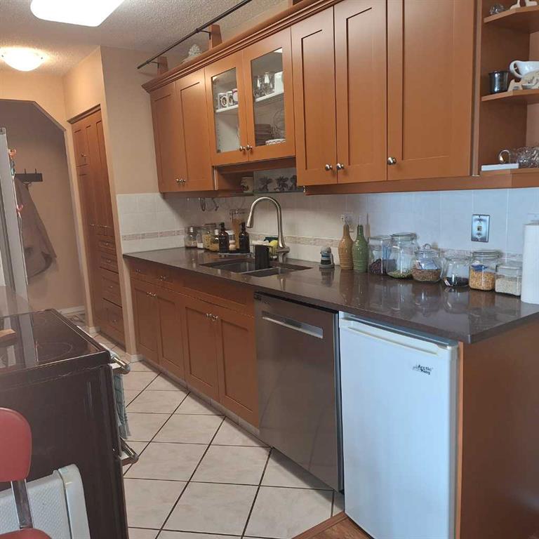 Extensively upgraded, this two bedroom, -two bath unit is waiting for your experience. Upgrades include the following: beautiful quartz countertops in kitchen and all vanities , new stainless steel recessed kitchen sink and countertop sinks in bathrooms, new plug ins in all the bedrooms and Living Room, under cabinet lighting and new doors on kitchen cabinets and repainted, soft close hinges on all doors, organized storage in kitchen and laundry room, new blinds throughout, ceiling fans and lighting. Living Room blinds are operated by a motor DO NOT Attempt to pull the blinds - push the button on the end of the curtain rod. Unit boasts underground parkade with 2 assigned stalls, external storage unit marked \"A\" (no key for unit itself in lok box just for storage area). Bonus features include gas fireplace, new wall Air Conditioner, 2 balconys - one looking East into parking lot and trees and the other has South exposure. Gas line on balcony. Tile in kitchen, laundry and bathrooms with well maintained laminate throughout rest of home. Massive wall of cabinets in Master bedroom together with walk-in closet so storage is not a factor in this immaculate and well cared for home. Building upgrades include entire interior painted last fall (2025), carpet in stairwell replaced and security coverage now has new system to include 15 cameras stationed throughout hallways, entrances, laundries etc. Reserve fund has allocations for windows and balconies in new future. Just move in and enjoy.