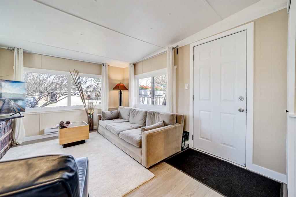 This 2 bedroom, 1 bathroom + den mobile home offers cozy, efficient living with a brand new IKEA kitchen, with new appliances, open concept dining, and living area.The home has had extensive updates, offering comfort, efficiency, and peace of mind for its next owner. Recent improvements include a fully insulated R12 underbelly with a new wood frame and weather barrier, enhancing year round efficiency. Enjoy outdoor living with two spacious decks, both finished with pressure-treated wood skirting. Inside, the home features new thermo-pane vinyl windows, a completely renovated bathroom, and new flooring throughout (excluding the primary bedroom). Additional interior upgrades include updated lighting, baseboards, and fresh paint both inside and out. The electrical system has been upgraded with a new code compliant feeds and new breaker panel, and the furnace has been overhauled with a new control board and igniter. Ducts have been professionally cleaned, and added comfort is provided with baseboard heaters in the living room and back den. Located on a huge leased lot ($580/ month) this tiny home is low maintenance and ready for new owners.