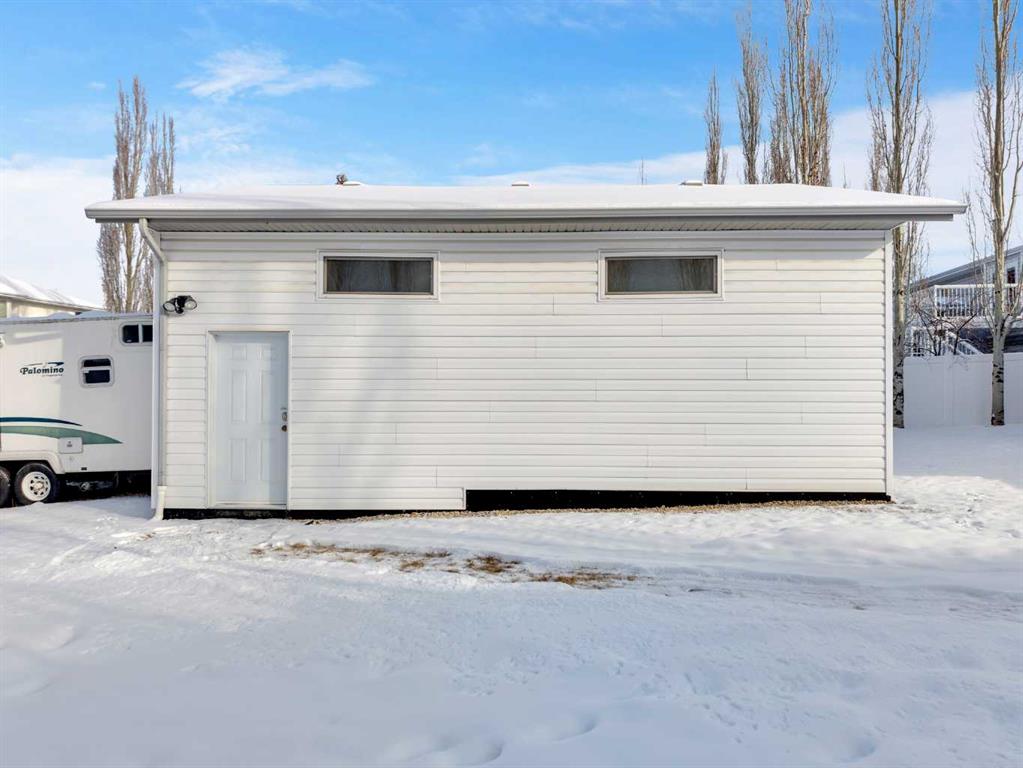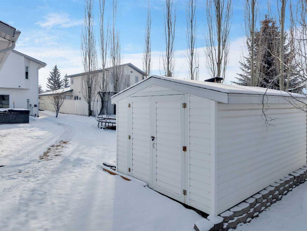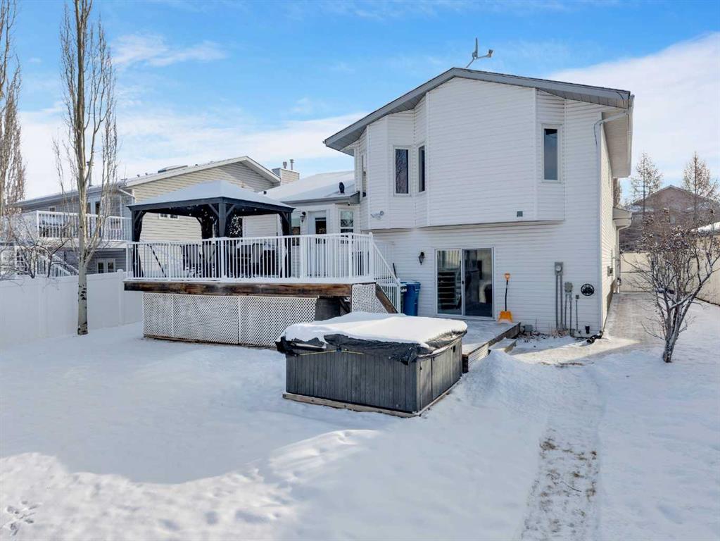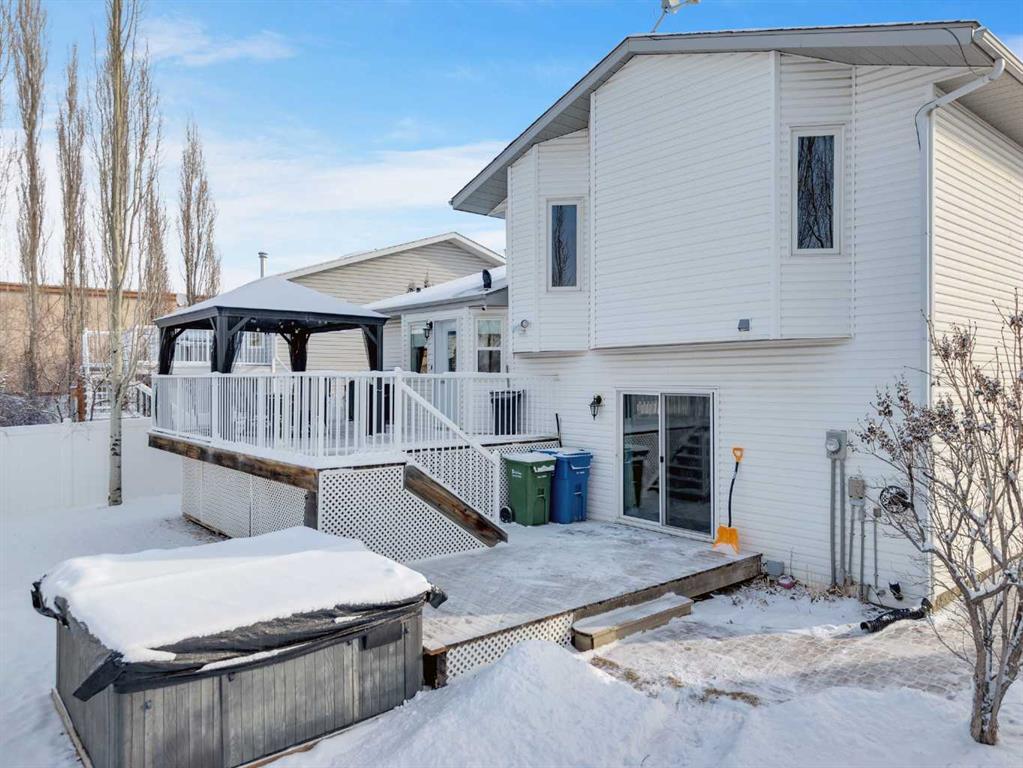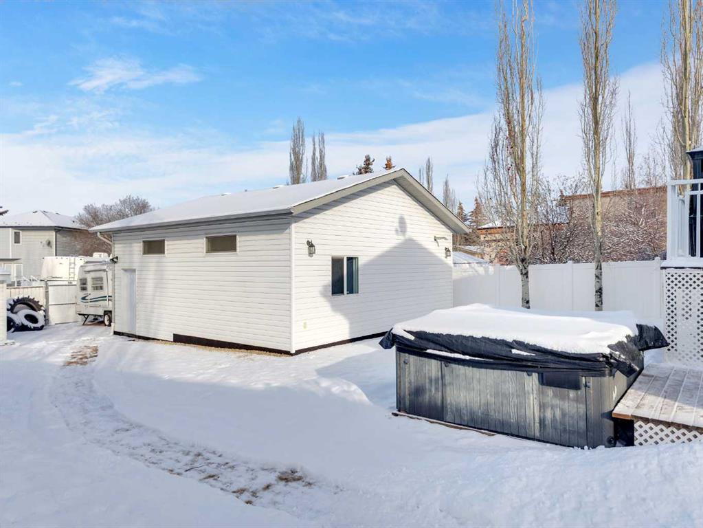 Great central location with quick and convenient access to the east side of Red Deer. This well-maintained 4-level split offers 4 bedrooms and 3 bathrooms, providing a comfortable and functional layout for family living. The main floor features a front attached garage with direct access to the laundry room for added convenience. The home has seen several updates, including all new windows and doors, fresh paint throughout, and central air to keep you comfortable year-round. The primary bedroom includes a private ensuite with a jetted tub—perfect for relaxing at the end of the day. The basement rec room is set up with built-in surround sound, creating a great space for entertaining or family movie nights. Step outside to a west-facing backyard designed for both enjoyment and practicality. You’ll find a 2-tiered deck with natural gas hookup, underground sprinkler system, and a stone walking path leading from the front driveway to the back deck. The large yard includes raspberry bushes, a kids play/swing set, and plenty of space to enjoy the outdoors. Additional features include RV parking, an oversized utility shed, and a detached heated shop (26x28) with 11.5 ft ceilings—ideal for a workshop or hoist system. All Poly-B plumbing has been replaced in 2026, offering added peace of mind. Located close to schools, parks, and the Collicutt Centre, this home combines convenience, space, and thoughtful updates in a great central location.
