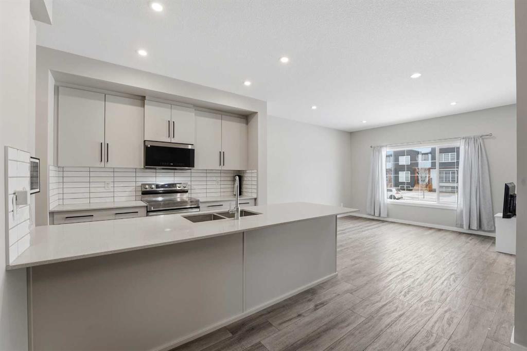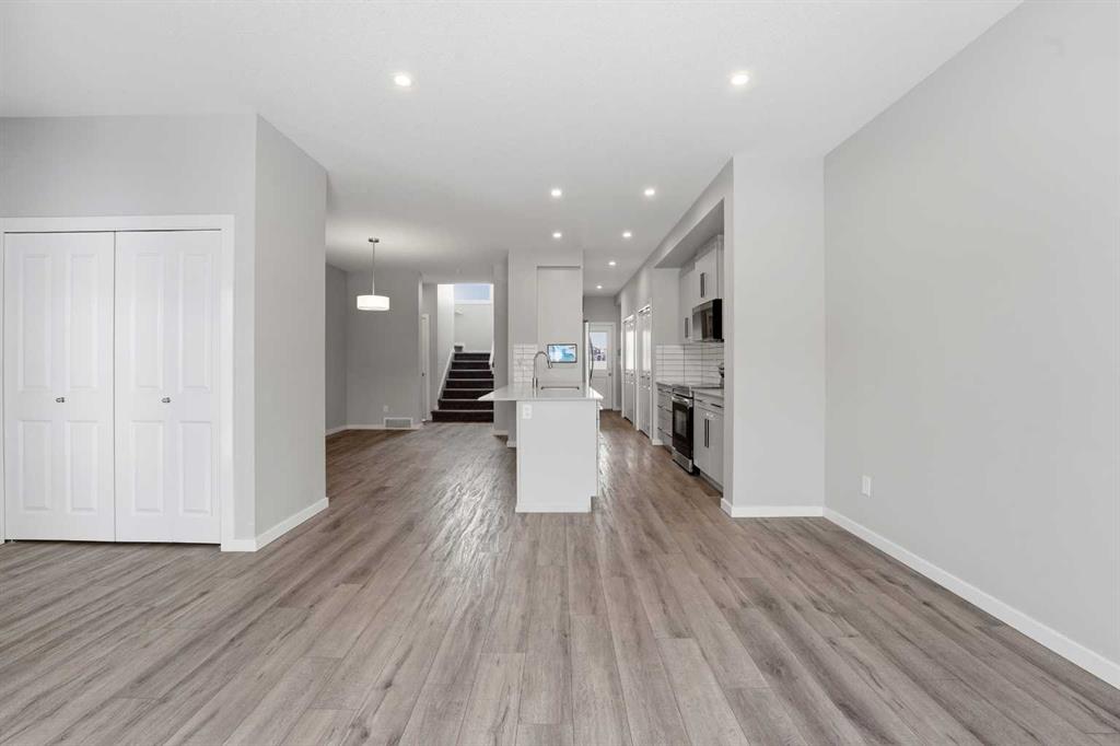 A two storey house with 3 bedrooms and 3 bathrooms. The front entryway greets you to the open style floor plan with laminate flooring that runs through the main floor. The living room is flooded with natural light through the large front window. Ceiling height kitchen cabinets are accented by quartz countertops, a new microwave hoodfan, stainless steel appliances, full tile backsplash, a large eating bar island with a sink, pot/pan drawers and a pantry for your convenience. There is a nice sized eating area and a powder room. Upstairs features 3 bedrooms, 2 bathrooms and a laundry closet. The king sized primary bedroom has a large walk through double sided closet & a 4 piece ensuite with an oversized glass/tile shower, an extended vanity, double sinks, quartz countertops and a water closet. The basement is unfinished and ready for your development with rough in for a bathroom. You\'ll love the backyard that features a 2 tier deck with a privacy wall and gazebo, vinyl fence and parking for two vehicles. The home features a Brilliant Light System, with touch dimmers, a screen and an app for Alexa to control the lights and thermostat. Better than new with all the appliances included, landscaping and fence! The home has solar panels (assumable contract).