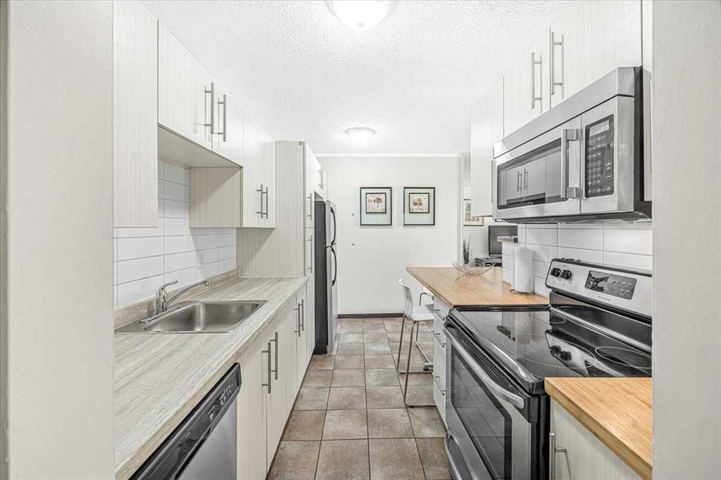 The unit features a generously sized kitchen complete with stainless steel appliances and updated cabinetry, flowing seamlessly into a spacious living and dining area—perfect for both relaxing and entertaining. A stunning 8-foot South facing patio door floods the space with natural light and opens onto a large private balcony.