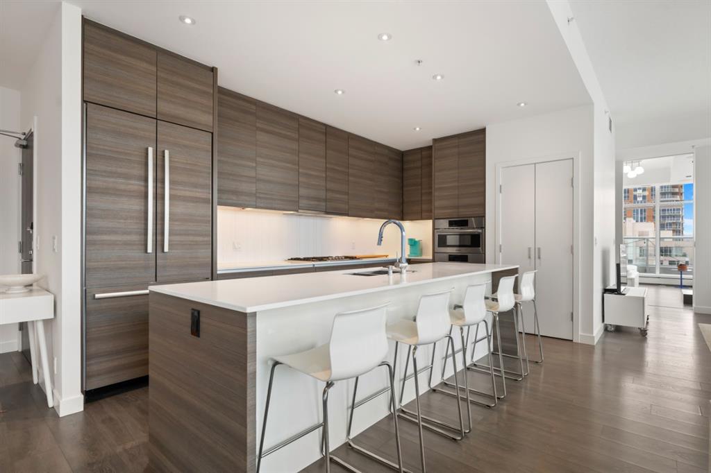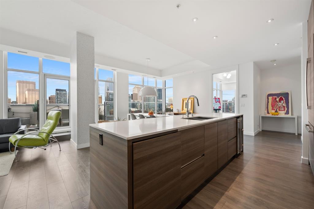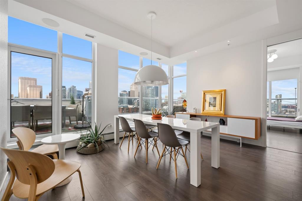 The Penthouse @ Smith: Your statement piece in the Beltline steps from dozens of shops + restaurants. Wake up to the skyline. Wind down to the mountains. Nearly 1,600 of interior square footage along with an additional 800 outside on the beautiful terrace. Floor-to-ceiling glass, 10-foot ceilings and light pouring in from every angle. The living and dining areas don’t just sit there - they pull you in, frame the view and make every night feel like an occasion. The kitchen is where function meets presence - sleek, expansive and seamlessly integrated. Wrapped in quartz, complete with a gas range, extensive storage and island seating for five, it’s built for both everyday ease and unforgettable gatherings. This is the kind of space where guests settle in and no one feels in a rush to leave. With three bedrooms, three exposures and two primary retreats, the layout offers a rare level of flexibility without compromise. Whether it’s hosting, creating a dedicated workspace, or simply having the freedom to spread out, this home adapts to your lifestyle rather than asking you to adjust to it. Take pride in knowing that $125,000 has been invested into the property over the last few years. Let\'s step out to the wraparound terrace. 180 degrees of “how is this even real?” Morning coffee. Sunset wine. Long weekend BBQs. Fire table conversations that make you forget about your iPhone. When the day winds down, your primary suite becomes the escape: Spa-inspired ensuite. Custom dressing room. Automated blackout blinds. Close the world off: Reset + repeat. Experience the exclusivity of a private garage to tuck away your vehicles along with a huge storage room for seasonal items. Step outside and the best of the city is already at your doorstep. No commute. No compromises. Just immediate access to everything that makes inner-city living so desirable - while having a home that feels like paradise above it all. At a certain point, it’s no longer about having more space - it’s about having the right space. Better views. Better design. A better way to live. The Penthouse at Smith represents that shift - the move you’ve been building toward. And when you experience it, one thing becomes clear: this is what “worth it” looks like.