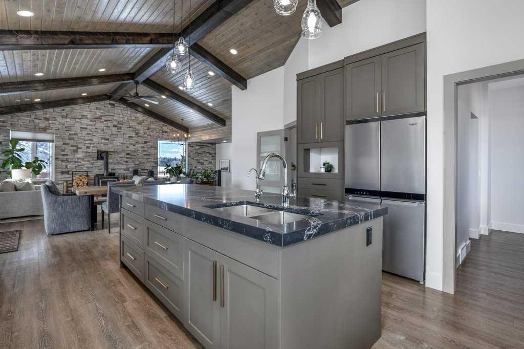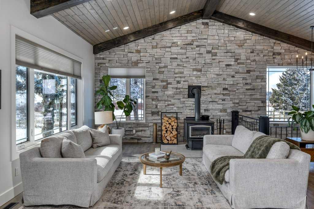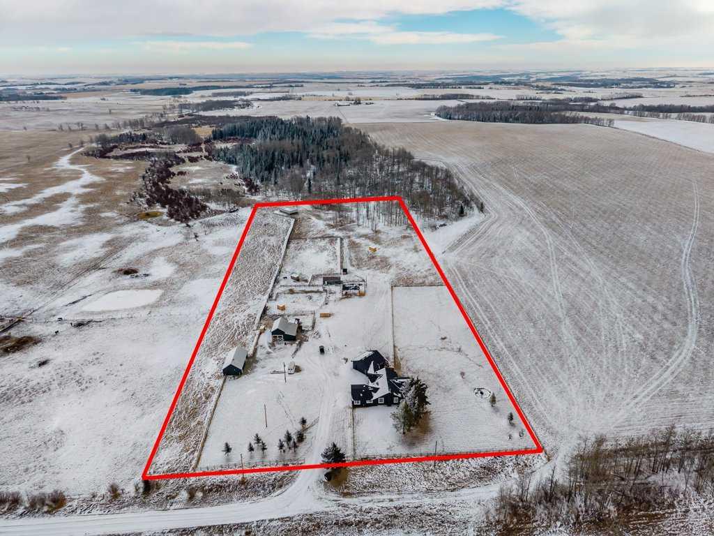 WILD ROSE HOLLOW | Tucked away at the end of a no-through road, this beautifully renovated 8.67-acre property offers a rare blend of privacy, functionality and storybook charm. Impeccably maintained and thoughtfully updated throughout, this exceptional boutique hobby farm is perfectly tailored for those seeking a refined rural lifestyle without compromise. The inviting farmhouse has been extensively renovated, seamlessly blending timeless character with modern comfort. Inside, a bright open-concept layout showcases a stunning kitchen with quartz countertops, custom cabinetry, premium appliances and carefully curated finishes. The main living area is rich in warmth & texture featuring a wood-clad ceiling, a striking stacked stone feature wall and a cozy wood-burning stove creating an elevated and inviting atmosphere. Just off the dining area, a gorgeous south-facing covered deck serves as a peaceful extension of the home’s living space with screens on three sides—including one with a remote-controlled retractable feature. This space allows you to enjoy the outdoors in comfort while taking in the surrounding landscape. The main floor offers a luxurious primary suite with a spa-inspired ensuite, complemented by a beautifully appointed main bath, functional laundry space and a thoughtfully designed mudroom complete with a dog wash; ideal for acreage living. The fully developed lower level provides a comfortable extension of the home, featuring an inviting entertainment area, 3 additional bedrooms, a full bath and versatile flex space suited to a home office, fitness area or studio. Outside the property transforms into a truly special setting—private, peaceful, and reminiscent of a curated country retreat. Surrounded by mature trees and open skies, the land is fully equipped for animals and sustainable living with new fencing, multiple paddocks & pastures, a large page wire–enclosed dog run, and automatic livestock waterer. The insulated barn is both functional and charming with a beautifully finished chicken coop and a single stall, perfect for small-scale livestock care or tacking up on cooler days. It also has a large hay storage area with loft & overhead door. A 40\' x 22\' powered shop (with gas line and installed furnace, not yet connected) offers excellent utility for projects or storage. The property also features a stunning greenhouse with power & water, complemented by an adjacent, fully enclosed garden w/ 7’ fencing—ideal for those looking to embrace a more self-sufficient lifestyle. Additional highlights include a heated double attached garage, new roof, updated siding, new windows and doors, upgraded mechanical systems and extensive exterior improvements reflecting the same exceptional level of care found throughout the home and grounds. Properties of this caliber, offering a high level of renovation, thoughtful design and overall presentation rarely come to market. A truly special offering where lifestyle, beauty & function come together in perfect balance.