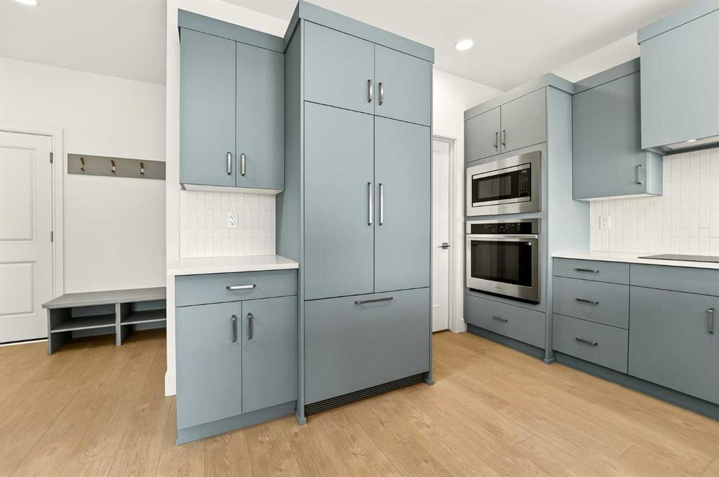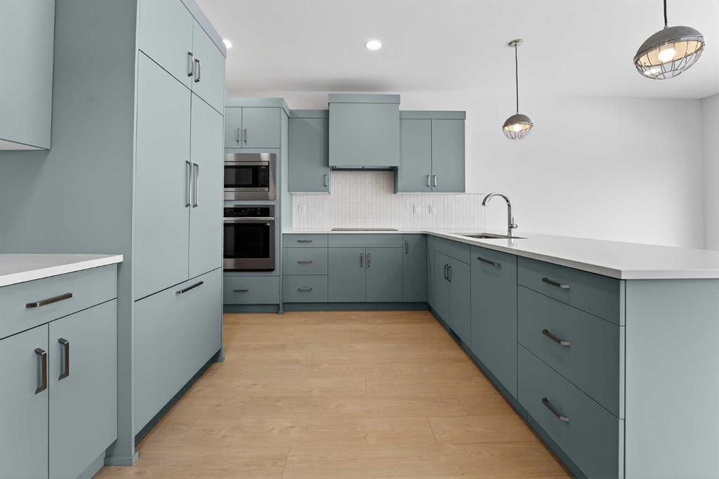 Located in the community of Southbrook, this brand new Lannark floor plan by Stranville Living backs directly onto Robert Plaxton Elementary School. A lot position like this is hard to come by, offering green space, open views, and the convenience of having a school just steps from your back door. The main level is anchored by a large U-shaped kitchen that provides plenty of counter space and bar seating, making it a natural gathering spot for the household. Quartz countertops pair with quality appliances including a panelled Fisher & Paykel fridge, built-in oven and microwave, an efficient induction cooktop, and a panelled dishwasher that blends into the cabinetry for a clean, cohesive look throughout. A generous walk-in pantry keeps the kitchen clutter free and adds the kind of everyday storage that makes a real difference. The dining area flows naturally from the kitchen and offers access to your future deck, connecting indoor and outdoor living with ease. The living room rounds out the main level with a large window that draws in natural light and creates a warm, inviting space to relax.