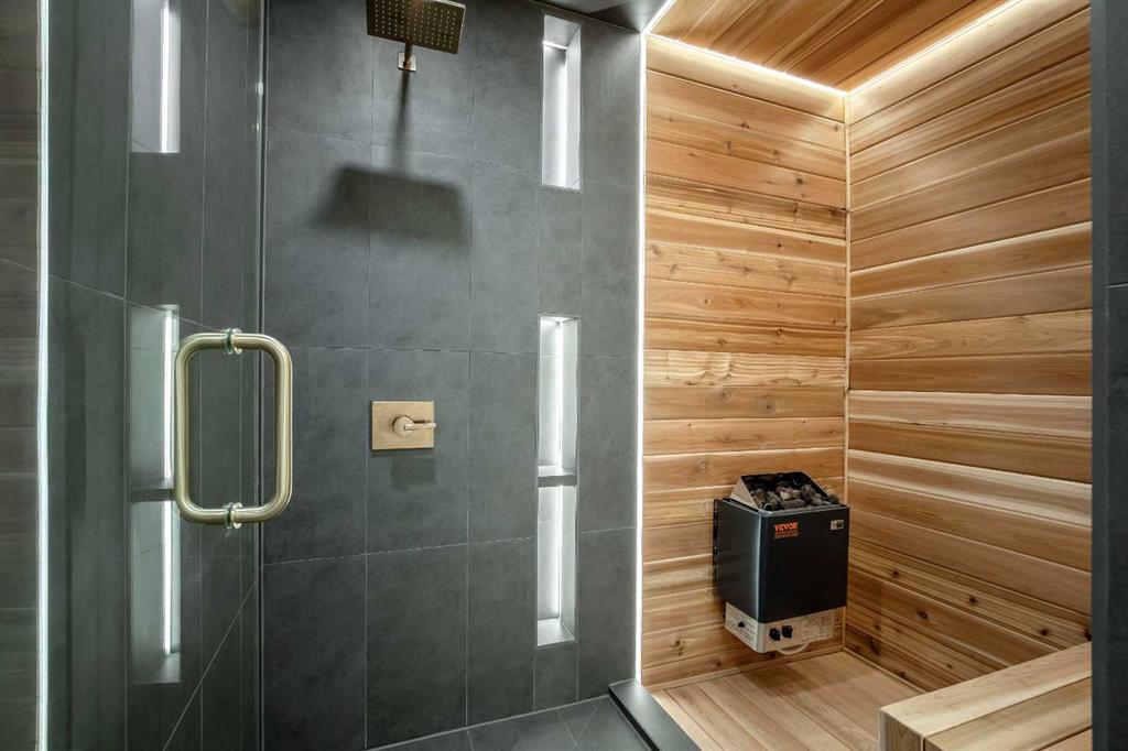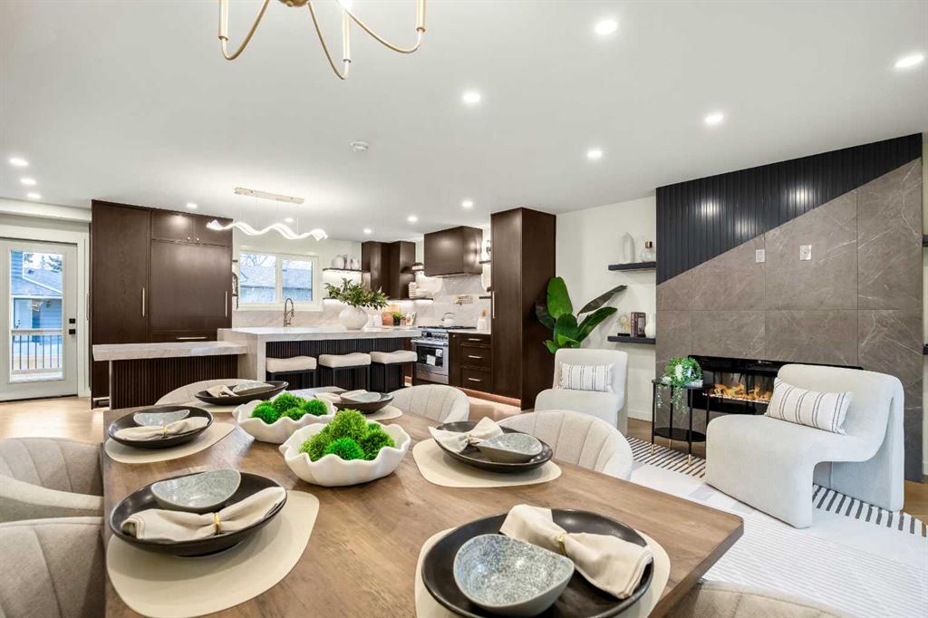 OPEN HOUSE: SATURDAY, APRIL 4TH: 12-4 PM | Welcome to Eleanor—an elegant, elevated, and exceptionally well-crafted home in the sought-after community of Oakridge. A fully renovated down to the studs home with over $600,000+ INVESTED (including all-new plumbing, electrical, and HVAC runs completed with all required city permits). Nestled on a quiet, tree-lined street, this home offers four bedrooms, a dedicated office and 2,366+ sq ft of living space, and an additional 500+ sq ft of crawl-space storage (not included in total living space). Situated on an expansive ~7,000 sq ft lot, only minutes away from South Glenmore Park, scenic pathways, and steps from Louis Riel School, Oakridge Community Centre, Stoney Trail, and more. The exterior of the home is striking yet inviting, featuring Hardie and Smart Panel siding, stained cedar soffits, new roofing and eavestroughs, and meticulously designed landscaping. The entry is equally refined, with a cedar-covered patio, garden-ready planters, and a stunning entrance inviting you home. Inside, sunlight fills every room through new triple-pane windows, white oak floors, curved oak arches, columns, beams, and white-oak butcher block shelving throughout. The main level features a Nordic-inspired kitchen with Taj Mahal counters, chocolate coloured white oak cabinetry, dovetail drawers and fluted detailing, a ~10-foot island with drop-down seating, a built-in coffee bar, and a glass wine display. Built-in appliances include a Fisher & Paykel fridge, freezer, and dishwasher, a Bosch 6-burner range, ZLINE convection oven, and Silhouette dual-temp wine fridge. The kitchen connects to the rear deck, creating a seamless transition between indoor and outdoor living. On the same level is the formal dining room and first living area, centred around a striking fireplace feature wall. Steps down, the main living room boasts dark oak ceiling beams, a second fireplace framed by custom arched cabinetry, a refined wet bar, and access to the backyard patio. This level also includes a glass-enclosed office, powder room, laundry, mudroom, and access to the finished oversized double car garage with epoxy floors and EV and garage heater rough-ins. Upstairs, the primary is a serene retreat featuring a fluted soaker tub, oversized double shower, champagne bronze fixtures, a walk-in closet, and a built-in makeup vanity. Two additional well-sized bedrooms with built-in closets and a beautifully finished full bath complete the level. The basement includes a rec room/flex room, an additional fourth bedroom, a three-piece bath with spa-calibre shower, cedar sauna and ample storage. Heated floors and champagne bronze fixtures are featured in all bathrooms. There’s new batt and blow-in insulation, a tankless water heater, central A/C, sump pump, solid core doors, smart home features, camera CAT-6 roughed-in, new drywall and a BBQ gas line on the deck. Eleanor embodies refined design and understated luxury—a rare opportunity to make her your home!