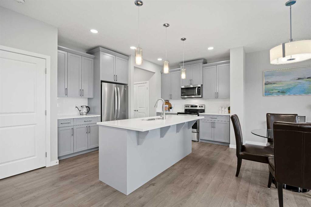 Open House Saturday, March 28, 1-3pm. Perched on a rare ridge lot in Mountainview, this fully finished walkout home offers an unbeatable combination of location, views, and turn-key living. Backing directly onto walking paths with no neighbors behind, you’ll enjoy sweeping views over Okotoks, beautiful sunrises, and even glimpses of the mountains — a setting that simply cannot be replicated. Built green with triple pane windows and thoughtfully designed throughout, this home has been barely lived in and shows like a brand-new build — clean, fresh, and completely move-in ready. The main floor features an open-concept layout with a spacious kitchen and living room that lead to a full-width vinyl deck with glass railings, perfect for taking in the views or entertaining. A large pantry, 2-piece bath, and mudroom connect to the insulated, drywalled, and painted garage. Upstairs, the primary suite is positioned to capture the incredible backdrop, complete with a 5-piece ensuite, walk-in closet, and additional linen storage. A generous bonus room separates the primary from two oversized bedrooms and a 4-piece bath, while the upper laundry room adds everyday convenience. The fully developed walkout basement offers a wide open layout with a 3-piece bath and room to add a fourth bedroom if desired. Outside, the large pie-shaped lot is fully fenced and landscaped, offering an expansive backyard along with an additional patio — ideal for relaxing, entertaining, and enjoying the open space. Added extras like a BBQ and two fire tables are included for instant backyard enjoyment, along with lifetime warranty blinds in key areas and approximately three years remaining on the builder’s structural warranty. Tucked away on a quiet, family-friendly street, this is a rare opportunity to own a ridge property where the views, space, and condition all come together seamlessly. Video Tour at https://rem.ax/4uW9ZJo