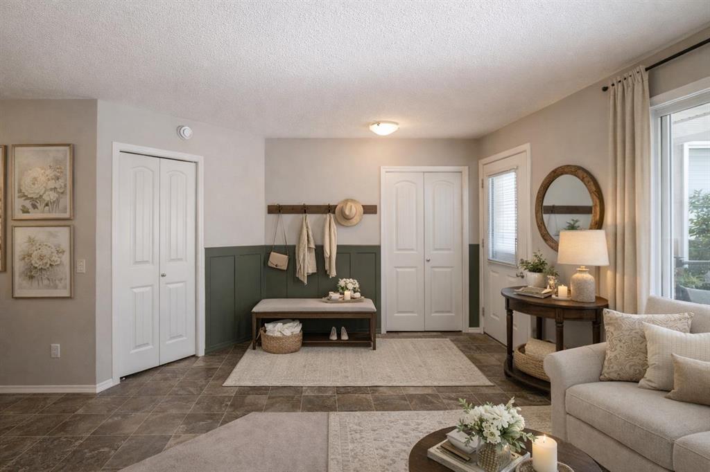 Offering two bedrooms, including a second bedroom with direct access to the back patio, this home embraces indoor-outdoor living with a peaceful greenspace setting. With two separate entrances, two assigned parking stalls, low condo fees, and a truly turn-key condition, this is an excellent opportunity for first-time buyers, downsizers, or investors alike.