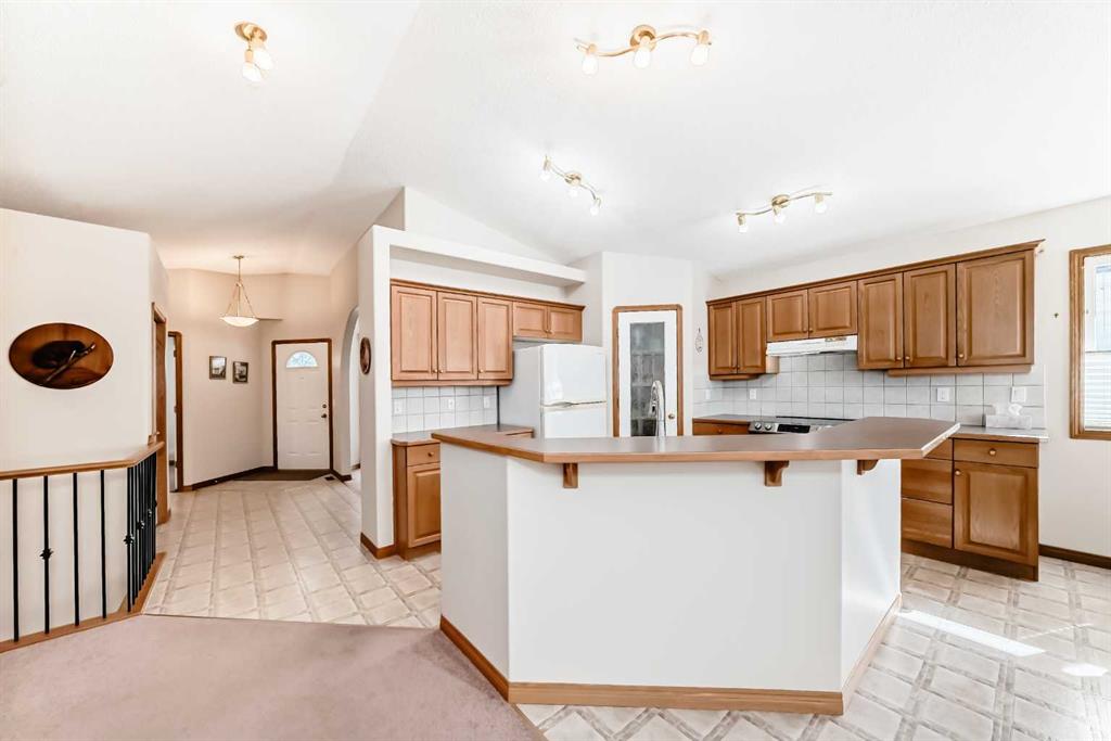 The main floor showcases a formal dining room with a charming bay window, perfect for hosting family gatherings. The heart of the home is the open living area, where the kitchen, breakfast nook, and living room come together seamlessly. A cozy fireplace anchors the space, while the kitchen offers a raised breakfast bar, ample cabinetry, and a convenient corner pantry.