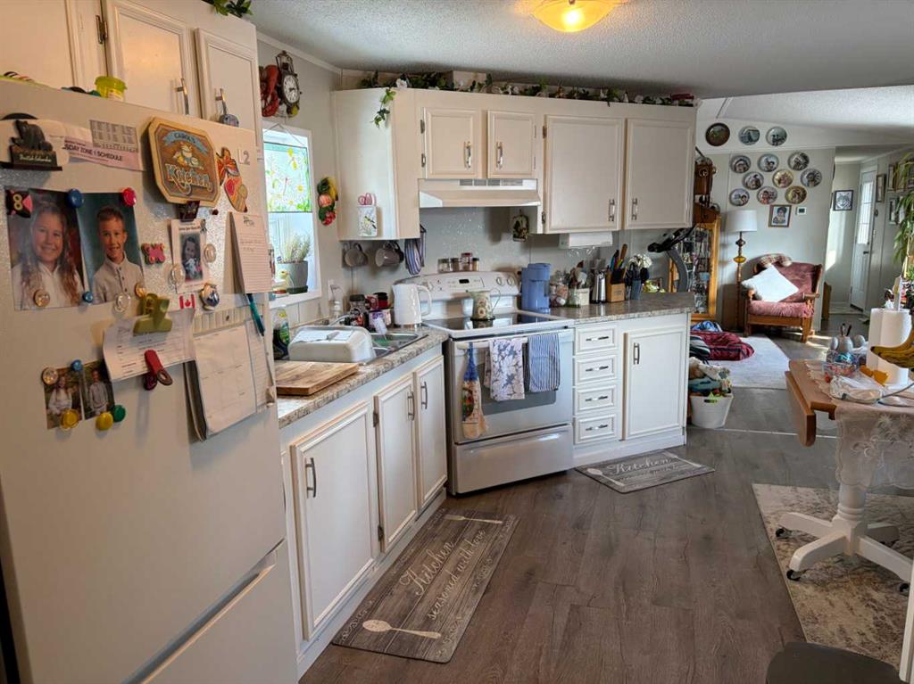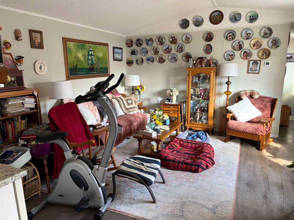 Welcome to this cozy and very well taken care of home. Since purchasing the owner has had a very durable deck built. It has stairs on one end, covered entrances and a ramp on the other end at a cost of $20,000.00. If your a gardener, the yard will make you smile with it\'s raspberry patch, 6 fruit trees and an abundance of perennials. A open floor plan with 2 bedrooms and a bathroom on one end and the primary bedroom, ensuite and walkin closet at the other end. The living room, kitchen/dining room blend into one another making it feel very spacious. The fridge, washer & dryer are just 1 year old and the HWT is 8 years old. There is a small deep freeze which will stay as well as the window coverings, 2 outdoor sheds and a sun screen on the deck. Park approval is required. The club house has a fitness room, games room and a kitchen for larger group gatherings. The rental fee is $200.00 but refundable at the end of the gathering. The park requires a $200.00 application fee.