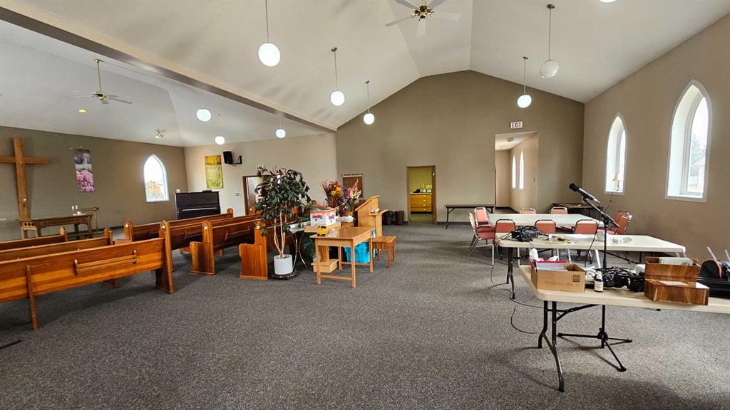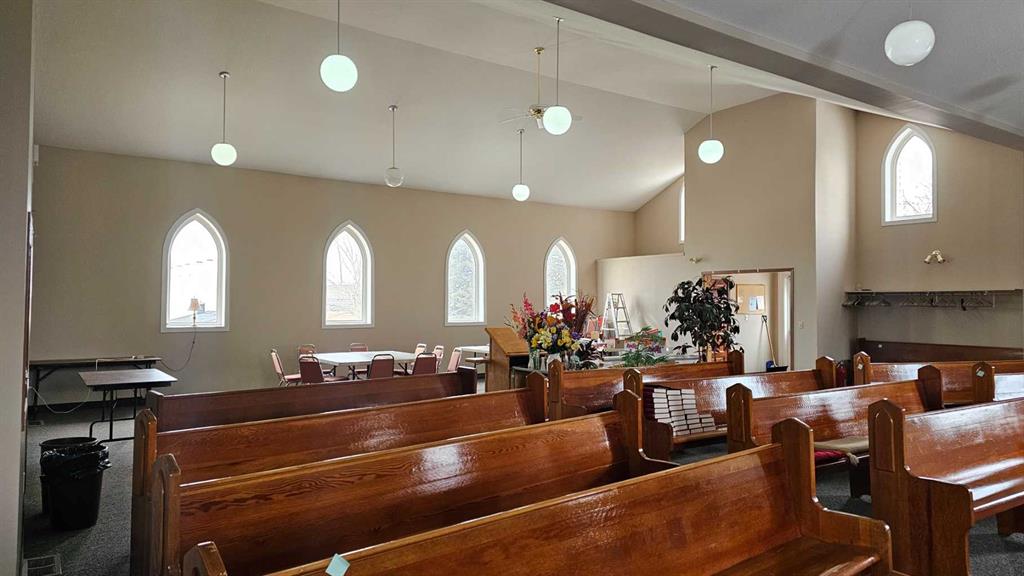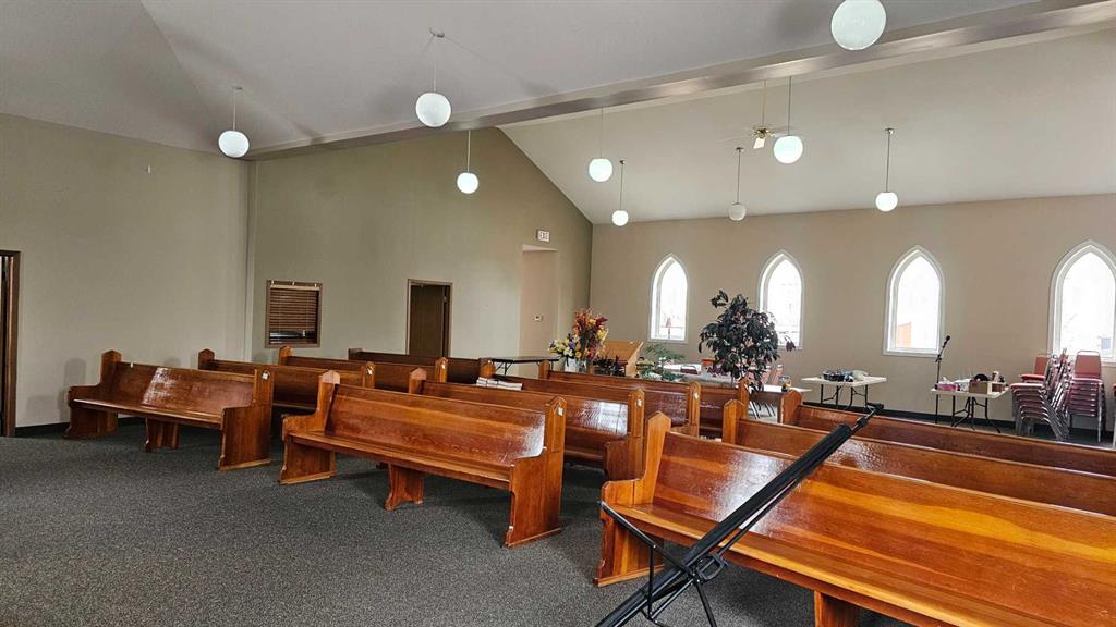 A beautiful former church in Veteran is looking for a second life. Recently renovated and in excellent condition, the main level of this church features eye-catching vaulted ceilings that are sure to make an impression. Enjoy all the natural light from the multiple large pointed-arch windows. There are also two spacious single-occupant bathrooms, a kitchen and a rear meeting room. This church also has an unfinished basement that has been a storage facility, but has great potential to be much more. Imagine the potential of this 3136 square foot building. Check out this great open floor plan that can easily become your future business or residence in the future.