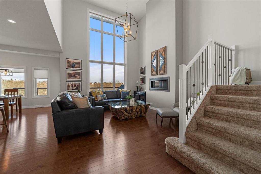 This immaculate, custom-built two-storey walkout in Creekview is the kind of home that immediately sets itself apart—now enhanced with a brand new solar system for modern efficiency. From the moment you step inside, you’re welcomed by rich hardwood flooring and a warm, thoughtfully designed layout that feels both elegant and inviting. Expansive floor-to-ceiling windows flood the home with natural light while showcasing truly breathtaking valley views—an ever-changing backdrop you’ll never tire of. The kitchen is beautifully appointed with custom cabinetry, high-end appliances, and a convenient walk-through pantry, seamlessly connecting to the dining and living areas—perfectly positioned to take full advantage of the scenery. Upstairs, the primary suite is a private retreat featuring double vanities, in-floor heating, a deep soaker tub, and a spacious walk-in shower. Two additional bedrooms and a large bonus room offer flexibility for growing families, guests, or the option to create a fifth bedroom if desired. The fully finished walkout basement adds even more living space with a generous family room, an additional bedroom, and a full bathroom—ideal for entertaining or accommodating visitors. Outside, the professionally landscaped yard feels like your own private park. Enjoy a stamped concrete patio with a cozy fire feature, underground sprinklers, vinyl fencing, garden space, and meticulous landscaping that truly elevates the entire property. Complete with air conditioning, RV parking, an oversized heated garage, low-maintenance front landscaping, and close proximity to walking trails, this home delivers on every level. A rare opportunity to own a property that blends comfort, quality, and unforgettable views—perfect for your next chapter.