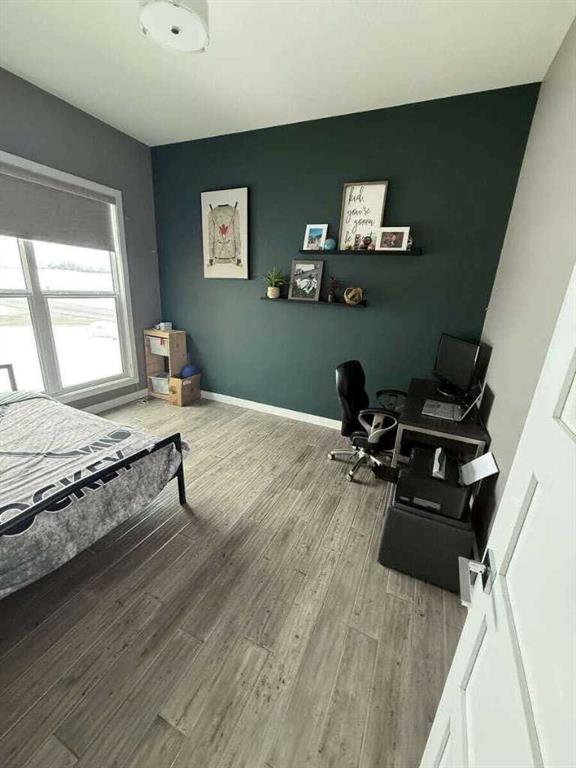 Imagine acreage living… without leaving town. We are listing our one of a kind custom dream home! This exceptional Sexsmith home offers the space, privacy, and views you’d expect from the country—paired with the convenience of town living. There are way too many features and extras to list. Built in 2018, this custom home is 1911 sq ft up and 1886 sq ft down. Over 3600 sq ft of developed living space. 5 bedrooms as well as a large theatre room that could serve as a 6th bedroom if desired. The theatre room includes a 7 speaker surround system installed by audio concepts. This home has high end finishing throughout. Quartz counters, LED lighting, hand scraped hardwood flooring and tile throughout, solid core doors to name a few. Every closet has custom wood shelving built in. It has many upgrades including a two level composite deck, a two level stamped concrete pad with firepit, a custom shed built under the deck big enough for your side by side, and extensive curbing and landscaping in the back. The garage is a heated, triple car with a folding staircase leading you up to the above garage storage level. It has plenty of parking for your RV with a 17’ by 85’ decorative gravel pad with a 30Amp plug. Other features include Central air conditioning, underground sprinklers, hot water on demand and more. 200Amp electrical service. All of this sits on a 1/2 acre corner lot, fully fenced that overlooks a farmers field. These are just some of the highlights of this home, do not miss out on this beauty!