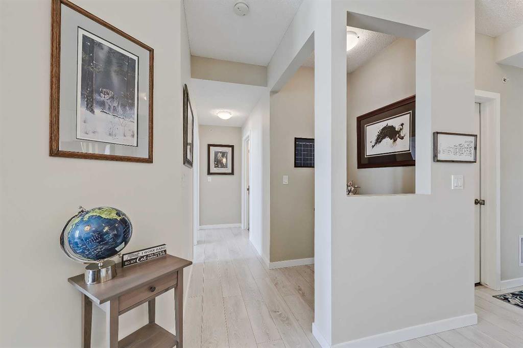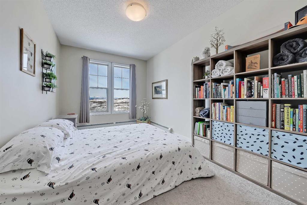 Enjoy stunning mountain views from every major room in this top floor 2 bedroom, 2 bathroom condo in the sought-after community of Sunset Ridge. From your private balcony to your main living space and both bedrooms, the views create a rare and elevated living experience that truly sets this unit apart. Inside, the space is bright, clean, and thoughtfully designed with modern white cabinetry, stainless steel appliances, and in-suite laundry, including a newer washer and dryer (approx. 1 year old) and a new microwave. The primary bedroom features a walk-in closet and private ensuite, while the second bedroom and full bathroom offer flexibility for guests or shared living. A cozy, separate office nook provides a dedicated workspace without compromising bedroom space. A standout feature is the TWO titled parking stalls — one heated underground with storage and one surface stall — a rare and valuable combination in the building. Located in Alora at Sunset Ridge, a professionally managed building with a fitness centre, guest suite, and visitor parking. Surrounded by pathways, parks, schools, and everyday amenities, this is a unique opportunity to enjoy scenic, elevated living in one of Cochrane’s most desirable communities.