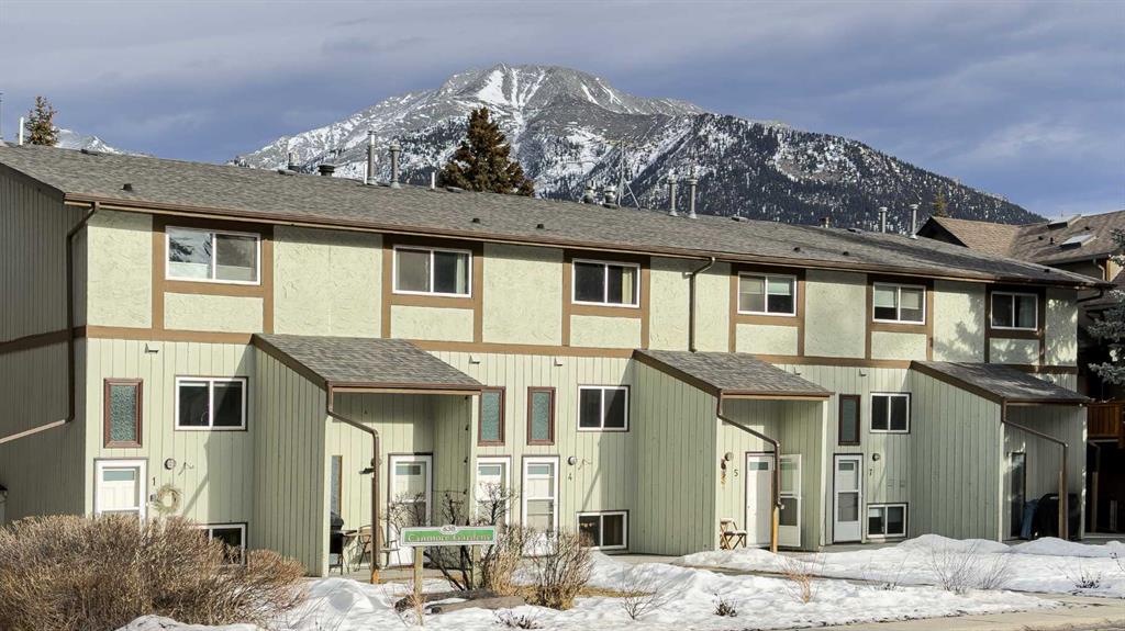 On a quiet street, only blocks from the Bow River as well as the enticing sights & sounds of Canmore’s vibrant Main St, this mechanically & cosmetically, fully renovated 2 bed top level end unit townhome is a “turnkey” stand-out. Entering from ground level, the landing leads up to a spacious & completely remodelled eat-in kitchen. Light & bright finishes gleam as sun pours in through recently replaced south-facing windows. New flooring & smooth, “paint grade” ceilings transition to the living room in a seamless fashion. Here, an airtight wood-burning stove is a major upgrade from the original fireplace & is a wonderful focal point in this restful space. Through new sliding doors, a covered deck adds outdoor living space where convenient stairs take you to the rear yard of the complex. Up stairs flanked in new handrails, you arrive at a broad landing complete with side-by-side laundry, storage & a convenient laundry folding area. The mechanical room contains a new furnace & hot water tank. The bedrooms are a hallmark of a time when developers built more generous floor plans, where the primary bedroom size rivals those in far more costly homes. The second bedroom is also comfortably proportioned. Both share a 4-pc bathroom with designer touches. One off street parking space, a sizable storage shed, all in a well-managed corporation offers value second to none.
