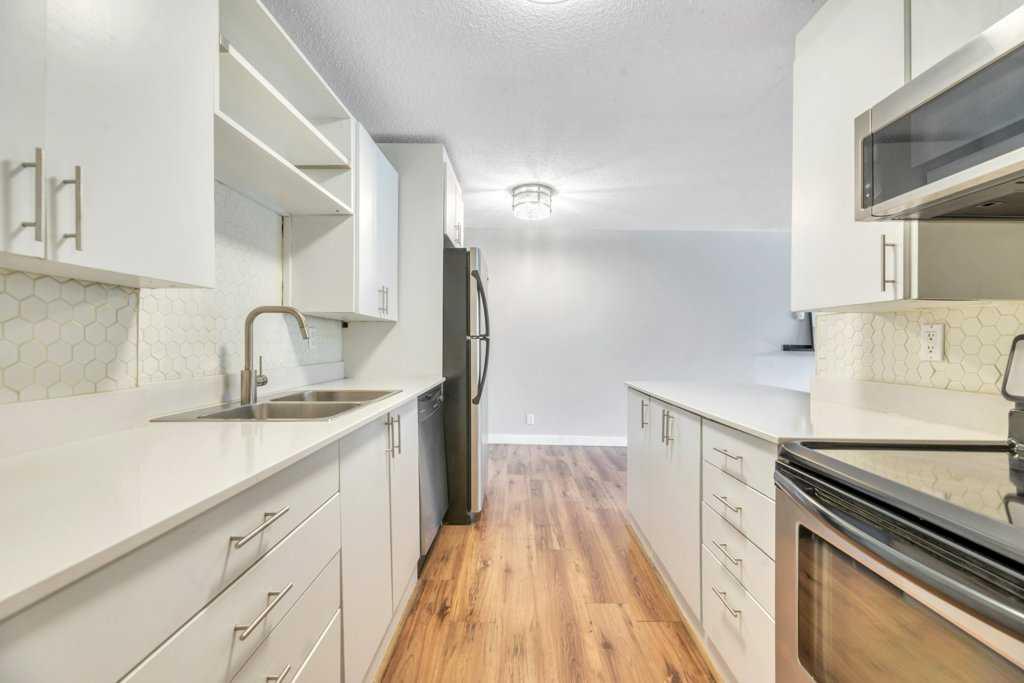SPACIOUS, 1 BED + 1 BATH / QUIET TREE LINED STREET / QUICK ACCESS TO DOWNTOWN & CHINOOK MALL / Move-in with ease to this refreshed, 1 Bed + 1 Bath Unit which is sure to impress! Recent updates include: painted kitchen cabinets & quartz counters, kitchen backsplash, paint throughout and newer light fixtures. The Open Floor Plan effortlessly combines the Kitchen, Dining & Living Room; host and gather with ease. Hard Floors throughout make cleaning a breeze. Relax outdoors on the private balcony, facing the beautiful tree-lined street for quiet mornings & evenings. The Primary Bedroom offers room for large furniture. The Storage Room is spacious and may offer future In-Suite Laundry with Board Approval. Covered carport parking stall included too. A fantastic opportunity for a simplistic, laid-back lifestyle & move-in ready! Fantastic location. Book a showing today!