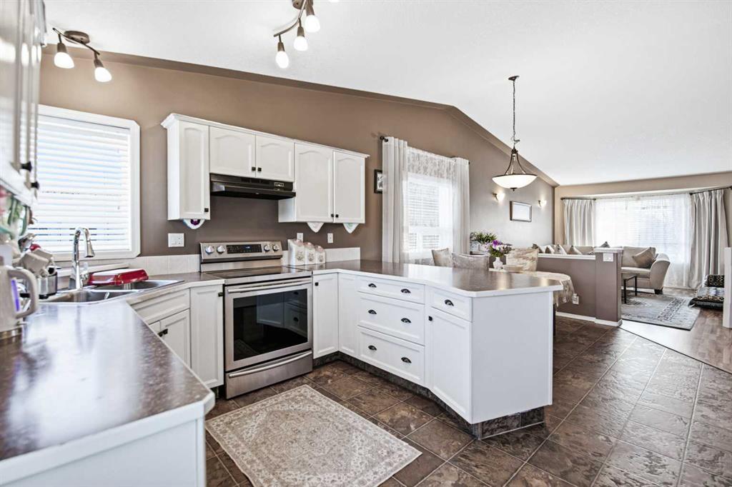 Welcome to this beautifully upgraded 4 bedroom and 3 bathrooms bi-level home located in the highly sought-after community of Johnstone Crossing in Red Deer - one of the most desirable neighbourhoods in Central Alberta! Perfectly positioned backing onto a peaceful park, this property offers privacy, scenic views from 16 x 20 deck and direct access to green space, making it an ideal setting for families, professionals, or anyone looking to enjoy a quiet yet connected lifestyle. Step inside and be greeted by a bright, inviting main floor featuring a spacious and functional layout. The kitchen is clean, modern and thoughtfully designed with an abundance of cabinetry and generous counter space - perfect for cooking, entertaining, or hosting family gatherings. The adjacent dining area flows seamlessly into the large living room, creating a warm and welcoming atmosphere filled with natural light. An Extra large primary bedroom is a true retreat, offering ample space for a king-sized bed, excellent closet storage and a convenient 3-piece ensuite. An additional bedroom on the main level provides flexibility for family, guests or a home office. The fully finished basement expands your living space with comfort and functionality, featuring cozy in-floor heating that keeps the space warm year-round. Downstairs you’ll find two more well-sized bedrooms, another 3-piece bathroom with large vanity and linen closet and a spacious family room - perfect for movie nights, kids’ play space or entertaining guests. This home comes packed with valuable upgrades and extras that truly set it apart. Enjoy peace of mind with a newer roof, high-efficiency furnace and updated 2023 appliances except for hood fan. A water softener installed in 2019 adds to the home’s comfort and convenience. The 22 x 23 double, attached garage includes radiant heat, making Alberta winters far more enjoyable. Outside, the extended concrete driveway offers ample parking, while the vinyl fencing provides durability and low maintenance. Step out onto the composite deck - ideal for relaxing or entertaining - overlooking the beautifully landscaped yard with firepit and park beyond. With no rear neighbours, this outdoor space offers both privacy and tranquility. Johnstone Crossing is known for its strong sense of community, family-friendly atmosphere and beautifully maintained surroundings. Residents enjoy nearby walking trails, parks, playgrounds, schools and quick access to shopping and amenities. With easy highway access, this neighbourhood is perfect for commuters while still offering a quiet, safe environment where neighbours take pride in their homes. Additional features include closet organizers, no-smoking home and a well-maintained interior throughout. This move-in ready home checks all the boxes: location, layout, upgrades, lifestyle and community. Whether you’re a growing family or looking for a turnkey property in a fantastic neighbourhood, this is a must-see opportunity in Johnstone Crossing!