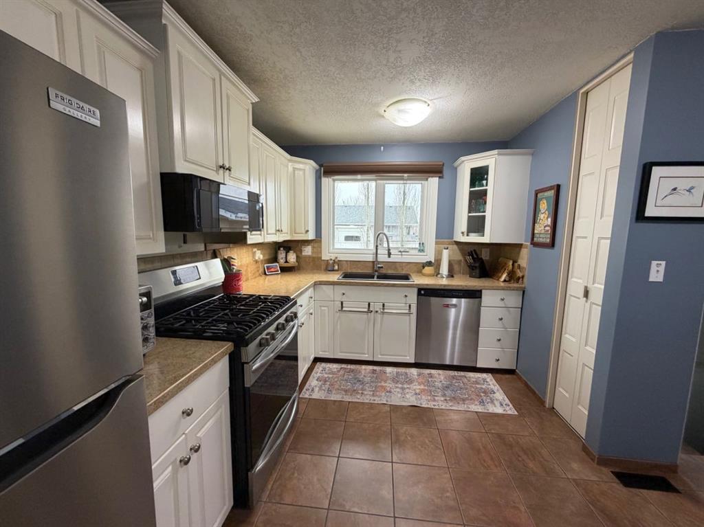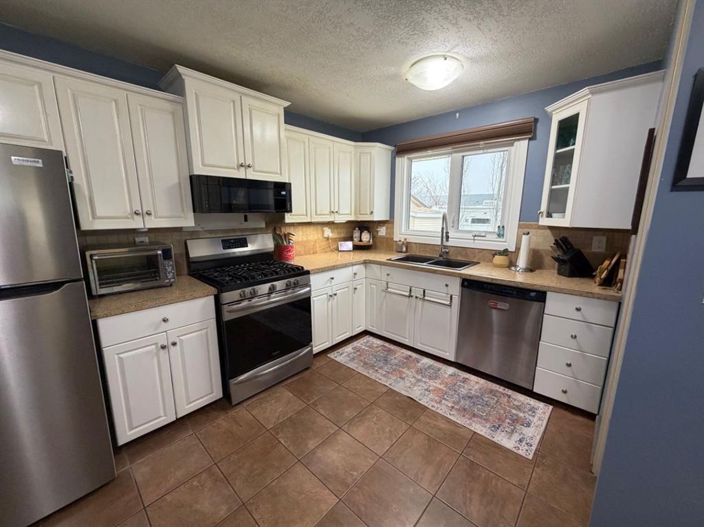 Welcome to this charming, fully renovated bungalow that perfectly blends timeless character with modern upgrades. Featuring four spacious bedrooms and three bathrooms, this home is truly move-in ready and designed for comfortable family living. Step inside to find a bright and inviting main floor with updated flooring throughout and a freshly painted interior that feels straight out of a magazine—truly Pinterest perfect. The cozy living room is anchored by a newly installed electric fireplace, creating a warm and stylish focal point. Vinyl windows, replaced just 11 years ago, enhance both efficiency and natural light, while Hunter Douglas blinds add a touch of elegance. The kitchen is equipped with upgraded appliances and offers both functionality and style, complemented by the convenience of central vacuum. Downstairs, the fully finished basement expands your living space with a massive family room—ideal for movie nights—as well as a fourth bedroom and a beautifully finished 4-piece bathroom. Outside, the property continues to impress. The fully landscaped and fenced yard is perfect for families and entertaining, featuring a self-watering planter, a garden shed, and a patio with a gas hookup ready for your BBQ and gatherings. The home also boasts new shingles and vinyl siding with exceptional curb appeal. Car enthusiasts and hobbyists will appreciate the heated, insulated detached garage, along with RV parking and convenient back alley access. Ideally located close to schools and shopping, this home offers the perfet combination of comfort, style, and convenience. A true gem you won’t want to miss!