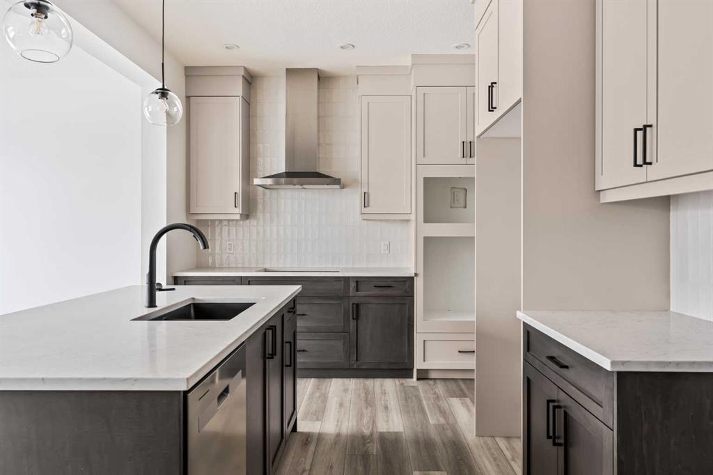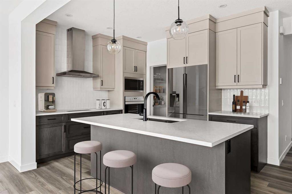Welcome to 215 Silver Spruce Grove SW - a beautifully designed, brand-new home by Brookfield Residential, located in the desirable community of Silverado. Offering nearly 2,000 sq. ft. of thoughtfully planned living space above grade, this 4-bedroom, 3.5-bathroom Rundle 24 Prairie model features a fully developed walkout basement and a double attached garage, delivering the perfect blend of style, space, and functionality. The main floor welcomes you with a bright, open-concept layout designed for both everyday living and entertaining. At the heart of the home is a gourmet kitchen, complete with built-in oven and microwave, gas cooktop, chimney hood fan, upgraded fridge, and sleek quartz countertops throughout. An undermount Silgranite sink with a matte black Moen faucet adds a modern touch, while the walk-through pantry connecting to the mudroom enhances convenience. The kitchen flows seamlessly into the dining area and great room, where an electric ribbon fireplace and added pot lighting create a warm, inviting atmosphere. Elegant spindle railing adds architectural interest and guides to the second level. Upstairs, a spacious bonus room provides a functional separation between the primary suite and secondary bedrooms. The primary retreat features a walk-in closet and a well-appointed 5-piece ensuite with dual sinks, a fully tiled shower with niche, and a private water closet. Two additional bedrooms, a full 4-piece bathroom, and an upper-level laundry room - complete with washer and dryer - round out the upper floor, along with a convenient pocket door connecting the primary closet to the laundry. The fully developed walkout basement expands your living space with 9’ foundation wall, a large recreation area, an additional bedroom, and a 4-piece bathroom - ideal for guests or multi-generational living. Outside, the home truly stands out with its rare setting - backing directly onto green space while also fronting green space for added privacy and serene views. The south-facing backyard is perfect for enjoying all-day sun, and the rear balcony is equipped with a gas line for your BBQ, making it ideal for entertaining or relaxing summer evenings. Located close to parks, schools, shopping, and major routes, this Silverado home offers comfort, convenience, and elevated design throughout. Both Builder Warranty and Alberta New Home Warranty are included, allowing you to purchase with confidence and peace of mind. Buy now and be settled right away into your brand new home!