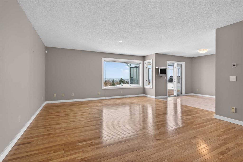 Warmly finished maple hardwood floors throughout the main floor combine with durable ceramic tile flooring in entry foyer, kitchen and generous breakfast nook adjacent. This level features two bedrooms with the primary boasting west views of Nose Hill Park, his & her closets and a renovated 5 piece ensuite bath with in-floor heating, double sinks and an extra large floating glass enclosed tiled shower with two separate water fixtures! The bright kitchen offers abundant counter and cupboard space, stainless steel appliances and a corner sink with a view! The main floor laundry and mud rooms with additional storage are conveniently located as you approach the double attached garage entrance just past the renovated 2 pc bathroom. The fully developed walkout level has been updated with engineered hardwood floors in the 3rd bedroom, bonus room and the huge family room. This area boasts a wet bar and standalone stove-style gas fireplace to keep you warm and cozy on chilly winter days. A full bathroom services this lower level and has heated floors as well. Easy access from this level to the rear walk-out patio just steps from the central clubhouse. A large storage and utility room complete the floorplan. Additional features include triple glazed windows throughout, central air conditioning, central vacuum, and practical window coverings. For the mature, discerning buyer who has waited patiently for a home offering the best combination of layout and location, this beautiful offering in a park-like setting is the one.
