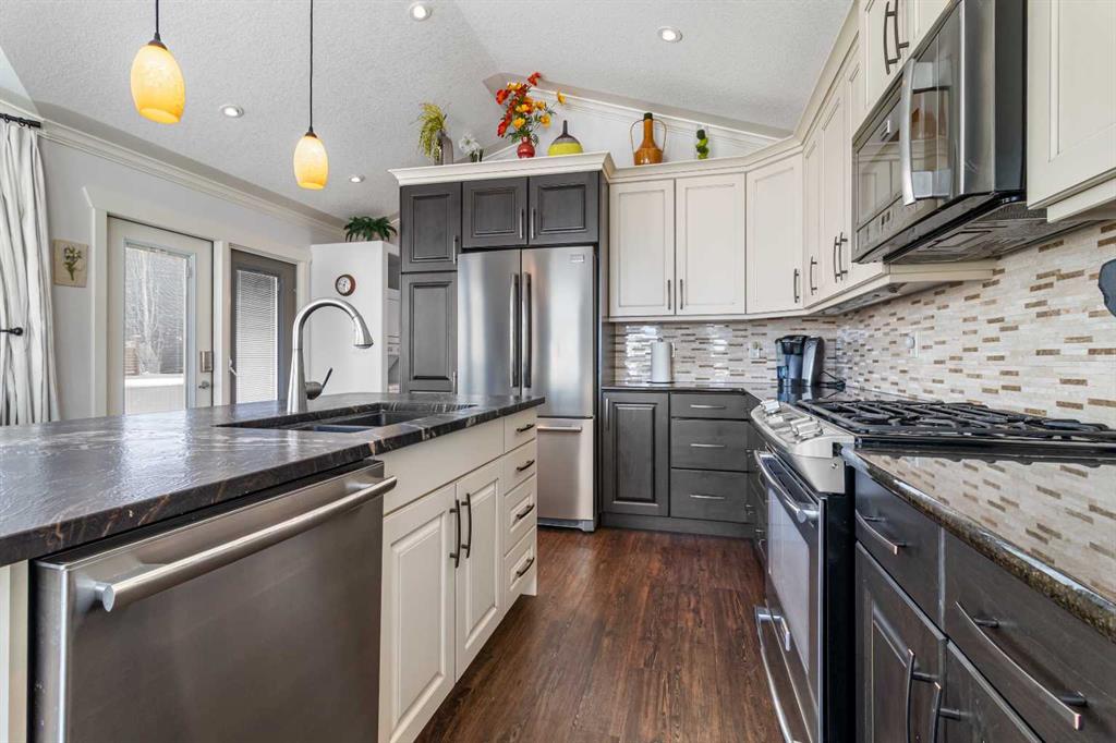 You’ll love the primary bathroom with its dual sinks and extra storage, and the spacious primary bedroom tucked at the back, offering peaceful views of the treed yard. Step outside onto the low-maintenance composite deck and relax in the sunroom while overlooking the cozy firepit area and your beautifully manicured backyard — complete with artificial turf and interlocking brick for easy upkeep.