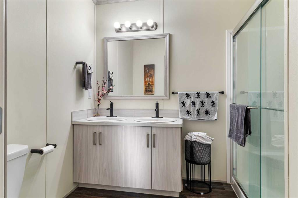 This modern, light-filled unit feels bright and welcoming the moment you step inside. The open-concept kitchen and living area is perfect for everyday living and entertaining, featuring a movable island and plenty of cupboard space. The bathroom is thoughtfully designed with dual sinks and a spacious walk-in shower.