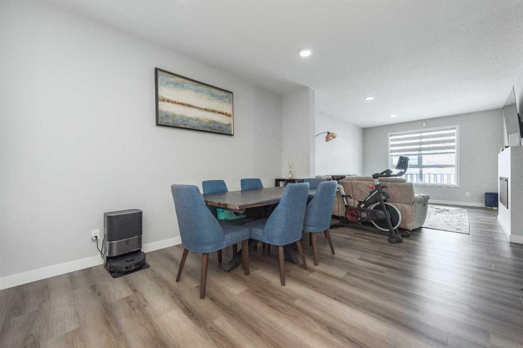 The main floor features 9’ ceilings, luxury vinyl plank flooring, a bright open-concept layout, and a dedicated tech/office space—perfect for working from home. The kitchen includes quartz countertops, pantry, and an eating nook, flowing seamlessly into the living and dining areas. A 2-piece bathroom completes the level.