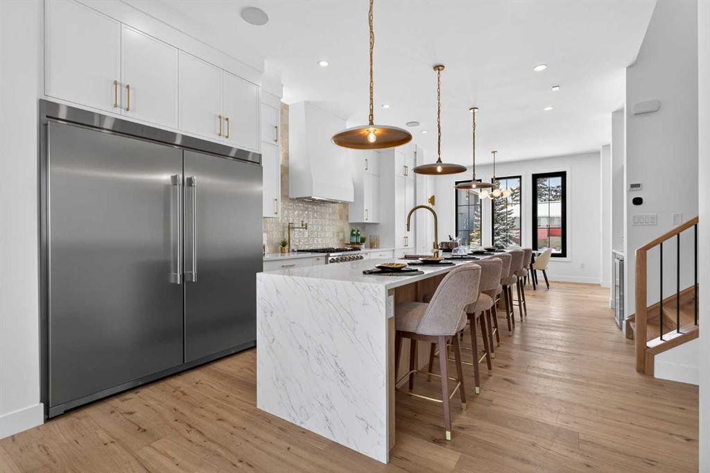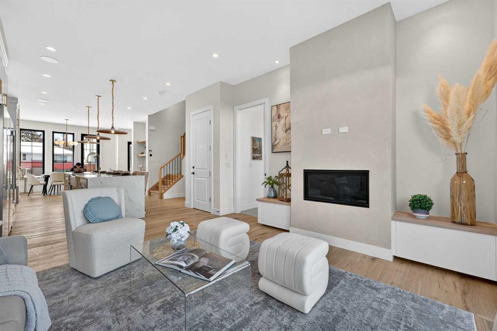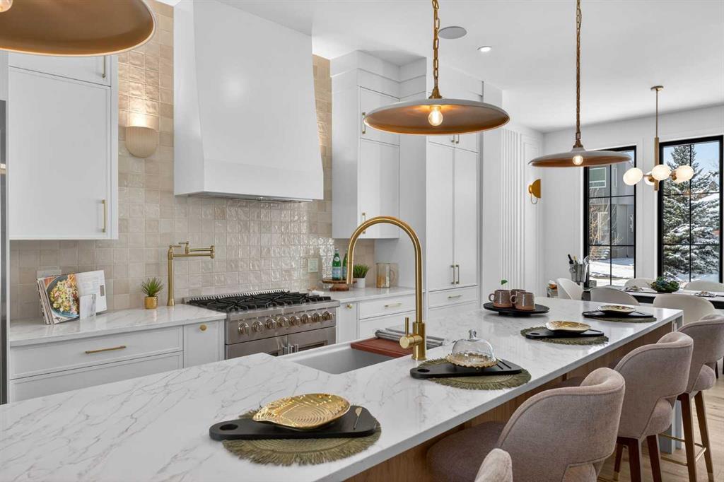 Nestled on one of Spruce Cliff\'s most coveted streets, 416 36 Street SW stands as a testament to modern luxury and thoughtful design. Imagine a family envisioning their future, or a couple with growing needs, pulling up to their brand-new dream home. This isn\'t just a house; it\'s the backdrop for their next chapter. Stepping inside, the 10-foot ceilings on the main floor immediately captivate. Sunlight streams through unique European-style windows, which elegantly tilt or swing open, inviting the gentle breeze. The chef\'s kitchen is a true culinary sanctuary, featuring a premium stainless steel appliance package with a 6-burner gas range and a 60-inch fridge/freezer, a convenient pot filler, and ample prep space on the stunning 13-foot island with its farmhouse sink and waterfall quartz edge. Sleek painted thin-profile shaker cabinets and a dedicated coffee station add to the thoughtful design. Warm hardwood floors flow seamlessly, guiding them through the open-concept space. The dining area, with its stylish feature wall, promises intimate dinners. In the living room, the fully Venetian plastered gas fireplace beckons cozy evenings, while patio doors open onto a spacious composite deck, engineered for no maintenance and long-lasting durability, complete with a gas connection for BBQs. A clever secret, a hidden door, conceals the chic two-piece bathroom. As they ascend the hardwood staircase, the second floor unfolds into a haven of comfort. The large primary bedroom, a serene retreat, boasts a captivating feature wall, vaulted ceilings and a spa-like five-piece ensuite. The two additional bedrooms offer ample space for children or guests, serviced by a beautifully appointed four-piece bathroom. A dedicated office, complete with a built-in desk, provides a quiet space to focus. Hardwood floors continue throughout this level. But the story doesn\'t end there. Downstairs, a fully independent, two-bedroom legal suite, with durable LVP flooring, presents a world of possibilities. Perhaps for visiting family, or as a smart investment, offering the flexibility of long or short-term rentals. Beyond the immediate charm, this home offers hidden strengths and smart features. The party wall, built to code with upgraded insulation, an extra layer of 5/8\" drywall, and resilient channels (Sound Bar), ensures unparalleled soundproofing. The thoughtful pre-wiring for A/C, built-in speakers, central vacuum, and Cat6 in the office and bedrooms speaks to a home designed for convenience and the future. 416 36 Street SW isn\'t just a new build; it\'s an invitation to a lifestyle. It\'s the beginning of countless memories and the quiet comfort of knowing you\'ve found your forever home on a street where quality and community converge. (Pictures/Layouts https://listedmedia.aryeo.com/sites/rxozypwb/unbranded)