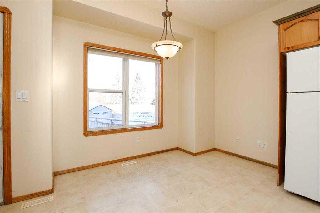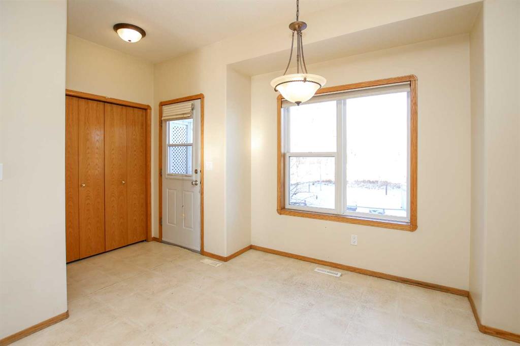 IMMEDIATE POSSESSION AVAILABLE ~ 3 BEDROOM, 2 BATH 2-STOREY TOWNHOME IN ANDERS SOUTH ~ LOCATED IN A KEY HOLE CLOSE WITH NO NEIGHBOURS BEHIND & TONS OF OFF STREET PARKING ~ A sun filled foyer welcomes you and opens to the spacious living room with 9\' ceilings and a large south facing window that overlooks the front yard and allows natural light to fill the space ~ The kitchen offers a functional layout and features warm stained wood cabinets, ample counter space including an island with an eating bar, wall pantry, and opens to the dining room with more large windows that overlook the backyard ~ Rear entry just off the dining room has access to the rear deck and backyard ~ 2 piece main floor bathroom ~ The primary bedroom can easily accommodate a king size bed plus multiple pieces of furniture and features a walk in closet with dual doors and built in shelving ~ 4 piece bathroom has an oversized vanity, and a tile tub surround ~ The basement has laundry with built in cabinets, a storage area with built in shelving, bathroom plumbing roughed in, with tons of space for a family room and bedroom with future development ~ Central vacuum ~ The backyard is fully fenced, landscaped with mature trees and shrubs and backs on to a green space with mature trees ~ Huge rear parking with back alley access has a plug in and space for multiple vehicles/potential RV parking ~ Located in desirable Anders South with tons of walking trails, a lake, playgrounds, and shopping with easy access to schools and all other amenities.