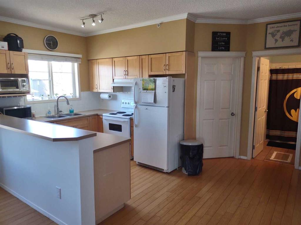Click brochure link for more details. Discover this remarkable top-floor corner unit in the vibrant center of Panorama Hills where you\'ll enjoy the ample natural light and flexible layout this property has to offer. Condo fees include water, heat, and electricity, providing the ultimate hassle-free living experience. Located on the 3rd floor, this condo features two generous bedrooms, two full baths, and a wraparound balcony featuring a gas BBQ hookup — ideal for outdoor entertaining while taking in the best views of the complex. This open-concept layout boasts soaring 9-foot ceilings with elegant crown moulding, hardwood flooring throughout, ceramic tile in the entryway and bathroom, and soft carpeting in the bedrooms for warmth and quiet comfort. The spacious living room offers additional windows that complement the condo\'s southwest-facing orientation, flooding the space with natural light and creating a bright, airy, and welcoming ambiance from sunrise to sunset. The master bedroom includes a private ensuite bathroom and a walk-in closet to meet all your storage needs. A second bedroom, a versatile den, and an in-suite laundry room round out this thoughtfully designed floor plan built for modern living. Additionally, this home comes with a secure, underground, heated, and titled parking spot, plus a private storage room for extra convenience. Ample visitor parking is also available. The complex is pet-friendly (with board approval). Enjoy an unbeatable location with a short walk to nearby shopping, dining, fitness centers, gyms, pools, theaters, schools, parks, and walking trails along creeks and ponds. Public transit and major roadways are easily accessible, putting everything within reach. A perfect combination of convenience and comfort awaits.