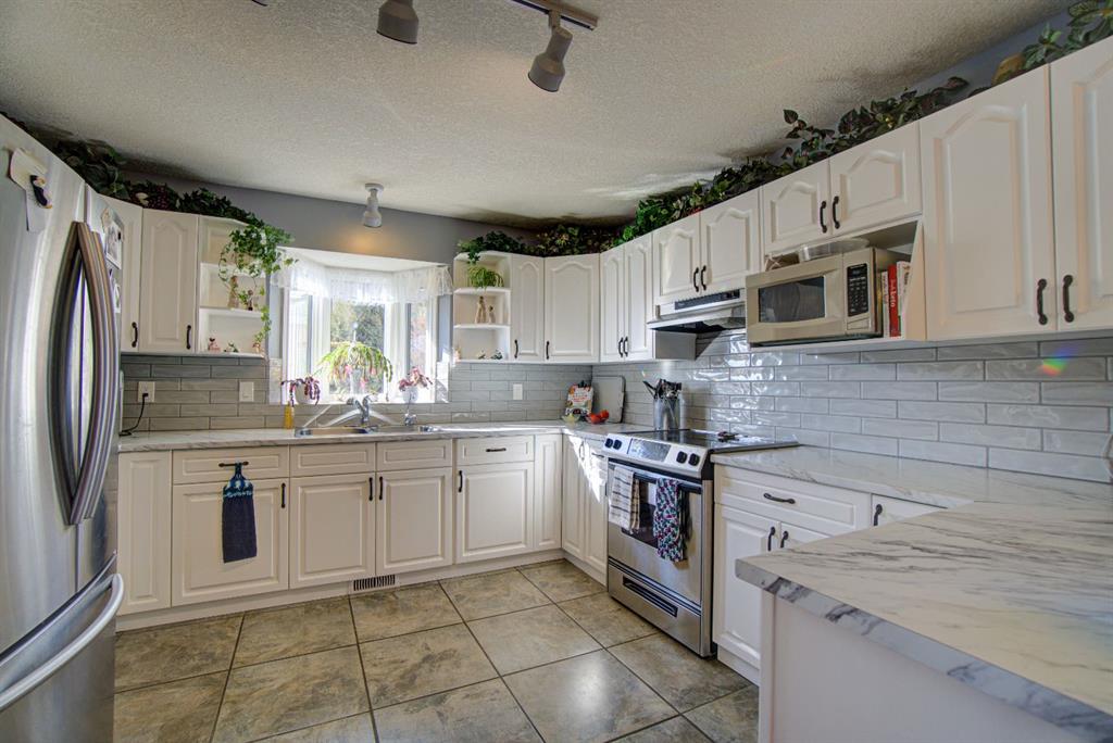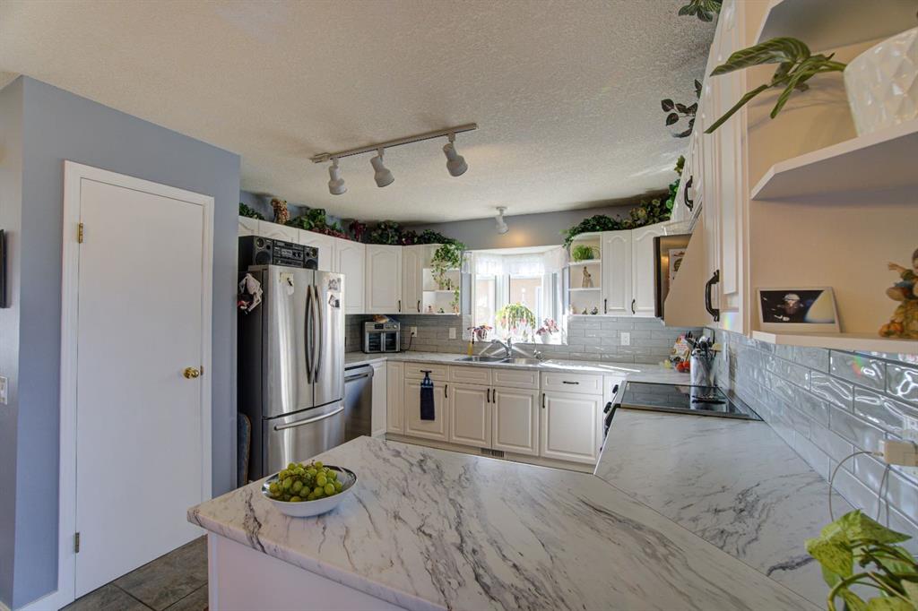 Welcome to this immaculate 4-level split in Claresholm, where pride of ownership shines from the moment you arrive. From the stunning curb appeal to the thoughtfully designed interior, this home offers the perfect blend of comfort, functionality, and outdoor living. The bright and inviting front living room features large east-facing windows, filling the space with natural morning light. The spacious kitchen has been tastefully updated with modern countertops, stylish backsplash, and stainless steel appliances, while the charming bay window over the sink adds warmth and character. The adjoining dining area is bathed in sunshine and offers patio door access to your west facing private backyard oasis. Upstairs, you’ll find three well appointed bedrooms, including a generous primary complete with a walk-in closet, 4-piece ensuite, and peaceful backyard views. A full 4-piece main bathroom completes the upper level. The lower level is the definition of cozy, featuring a welcoming family room with a wood-burning stove—perfect for relaxing evenings. This level also includes an additional bedroom or ideal home office, a convenient laundry area, and direct access to the attached double garage. Downstairs, the developed basement offers even more space to unwind or entertain, highlighted by a second family room with a built-in bar, wine fridge, and bar fridge. Plus, enjoy the bonus of a large crawl space providing excellent storage. Step outside and fall in love with the beautifully landscaped backyard, complete with an oversized deck, built-in hot tub, mature trees for privacy, a tranquil rock waterfall feature, and vibrant perennials throughout. The large concrete driveway provides ample space, including room for RV parking, and the double attached garage offers added convenience with backyard access. Ideally located close to downtown, walking paths, and directly across from a park, baseball diamond, and spray park, this home truly has it all for families and entertainers alike. Don’t miss your opportunity, book your showing today!
