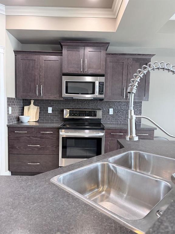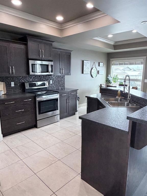 Welcome to this stunning bi-level home located on a CORNER LOT in the sought after community of Signature Falls! Step inside to an inviting OPEN-CONCEPT layout featuring vaulted ceilings, recessed lighting, and an abundance of NATURAL LIGHT flowing throughout . The kitchen is both stylish and functional, featuring stainless steel appliances, a corner pantry, tile flooring, dark oak cabinets, tile backsplash, and a centre dining nook , perfect for everyday living and entertaining. A rear door leads to the deck, perfect for summer BBQs and outdoor relaxation. The living room is warm and welcoming with a cozy gas fireplace, while a large den just off the kitchen features a bay window and glass wall, creating the ideal space for a home office or sitting area. The master bedroom is thoughtfully set on its own level, offering a LUXURIOUS ENSUITE with DOUBLE SINKS, JACUZZI TUB, separate shower, and WALK-IN CLOSET. The DEVELOPED BASEMENT adds more living space, complete with a large family room, 2 additional bedrooms, and a 3 piece bath with a beautiful tiled shower, perfect for guests or a growing family. With CENTRAL AIR CONDITIONING, you’ll stay comfortable all summer long. The HEATED 22x24 ATTACHED GARAGE adds convenience and functionality year round. Outside, enjoy a fenced and landscaped backyard, with easy access to the park behind. NO REAR NEIGHBORS! Call today for a viewing!