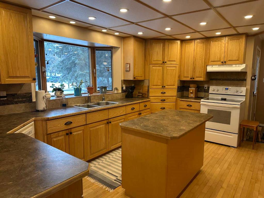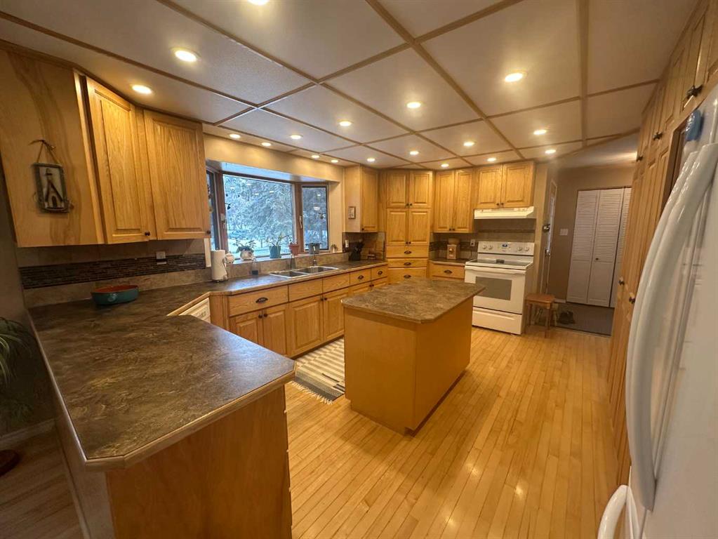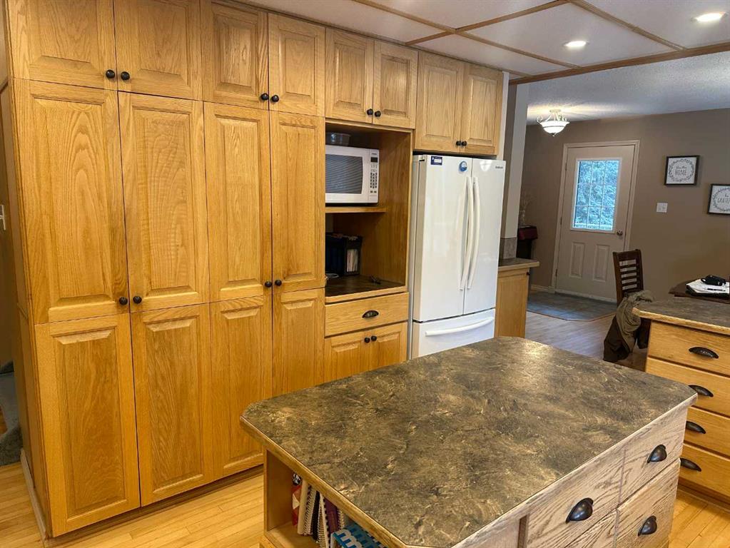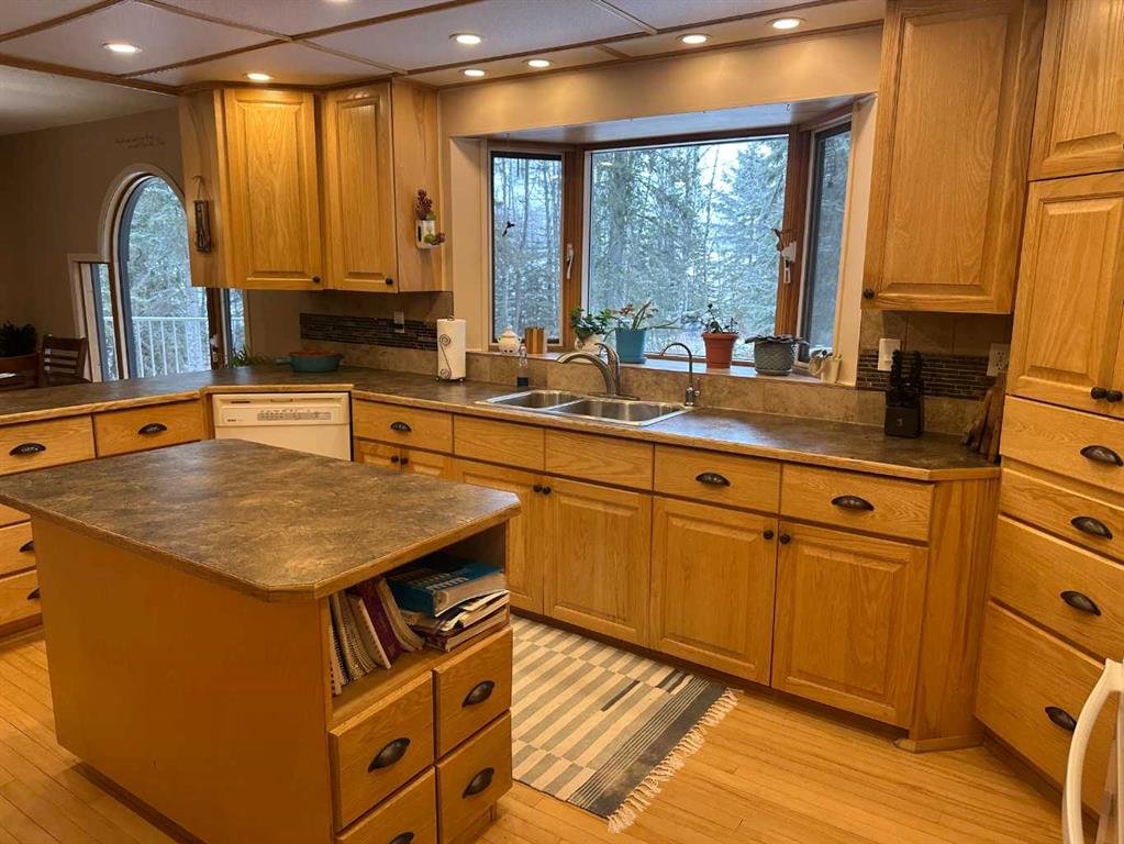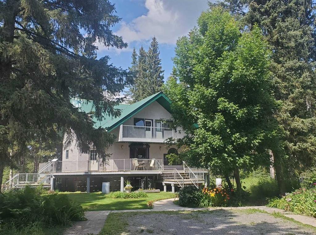 The perfect combination….. is the best description of this acreage that is nestled amongst the trees, on pavement and bordering Prairie Creek. You are immediately greeted with an open foyer and 3-piece bath/laundry facility for your convenience. This family friendly home boasts an exceptional kitchen with plenty of countertop preparation space and kitchen cabinetry. The dining room shares an area in which you can entertain large family gatherings along with the spacious main floor living room with a corner pellet stove. Off the living room you can enjoy a 3 season room that houses a gas stove for heat and large windows to take in the creek views. The upper level primary bedroom has an exceptionally large living space with a full ensuite and also a deck that you can enjoy your mornings taking in the breath-taking views of the creek. 2 additional bedrooms with their own access to decks are also available on this level. Downstairs you will discover a large family room, bathroom and bedroom along with a storage room and a secondary room that can easily be transformed to an additional bedroom.