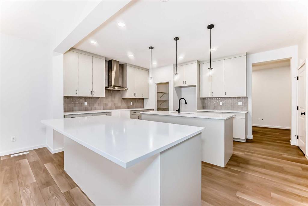 TWO ISLANDS. Not for show—because real life doesn’t happen in a straight line. One becomes the drop zone, the snack zone, the “I’ll deal with this later” zone. The other stays clear enough to actually cook, host, or pretend you have it together when people come over. It’s one of those decisions that feels excessive—right up until you live with it, and then you wonder why it isn’t standard. Finished in CLEAN, MODERN TONEs with QUARTZ SURFACES, full-height cabinetry, and a chimney hood fan that actually looks like it belongs there, the whole space holds up whether it’s a Tuesday night or ten people deep on a Saturday.