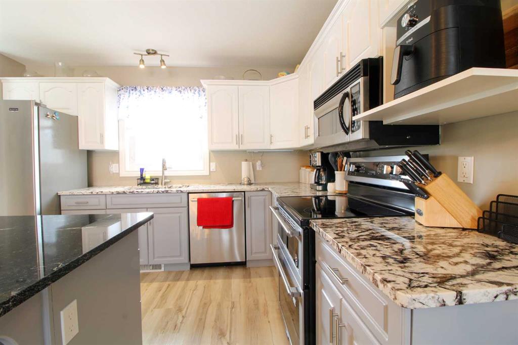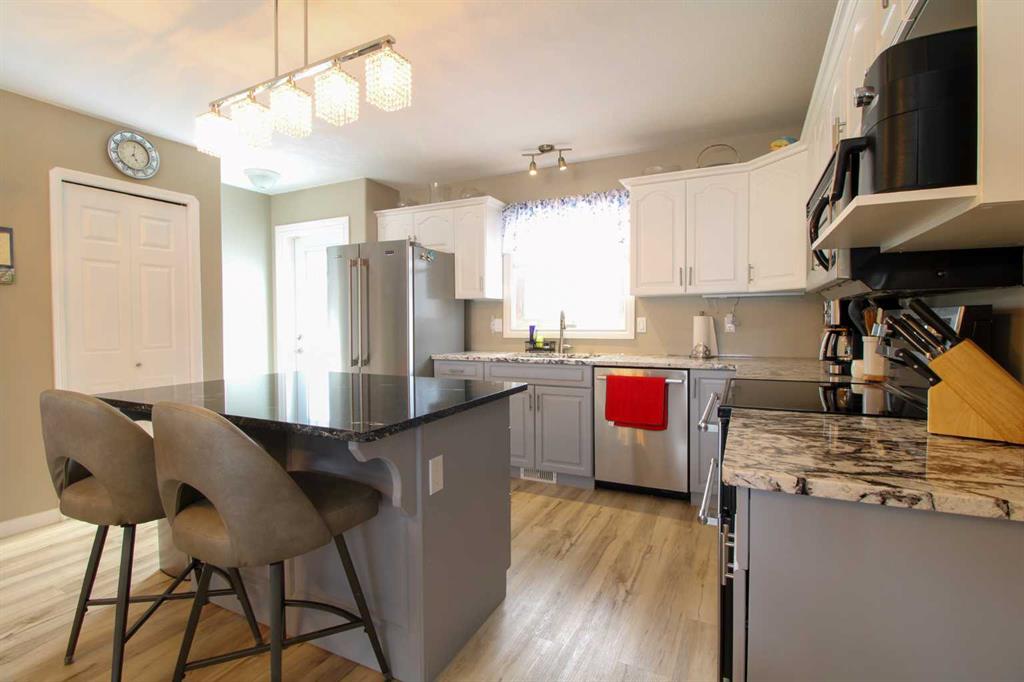 The value adding updates in the last 5 years include: high efficiency furnace, air purification system, hot water heater, refinished kitchen cabinets, new counters tops, updated fridge and stove, central air conditioning, changes to lighting and a natural gas line to the bar-b-que. Other improvements include flooring in 2021 and shingles in 2017! This home is located within walking distance to College Park school, Lakeland College and Bud Miller Park. Enjoy great sight lines from the family room through to the dining and kitchen areas created by the open plan design. Eat a quick meal at the kitchen island or have a family feast in the dining room all while keeping an eye on the children playing in the sunken family room. There are 2 bedrooms on the main floor with the master bedroom having direct access to the main 4-piece bathroom. The fully finished basement features 2 more bedrooms, an additional 4-piece bathroom, the laundry and a generously sized family room. There is lots of parking at this home. It has a heated double attached, concrete driveway, plus side parking for a utility trailer, small RV or another vehicle. The back yard is treed and fenced for privacy and is perfect for pets and outdoor family time. View this beautiful home in a sought-after location! The seller has requested that the property be on the market for 48 hours before reviewing any and all offers. Public Open House Tuesday March 31st from 5:30PM-7:00PM.