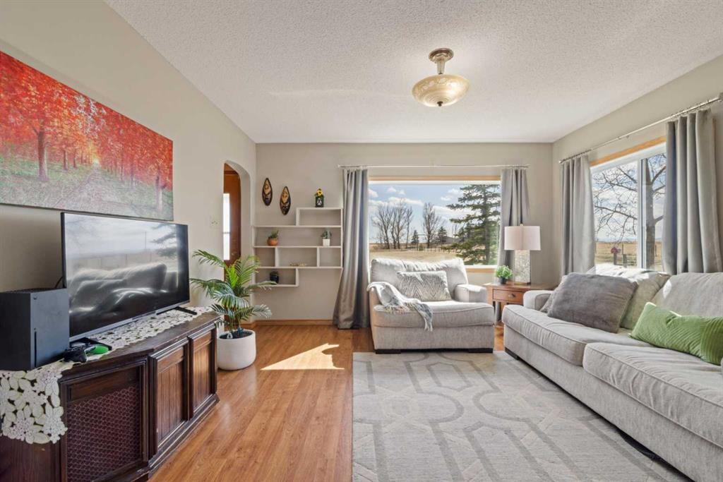 CHECK OUT THE VIRTUAL TOUR! Escape to acreage living just minutes from Hwy 2 with a HUGE 1920 SF SHOP - 40\' x 48\' with 2- 16’ Doors, complete with 100 amp service, 6-8’ LED lights, 15 amp general plugs, 20 amp bench plugs, 125,000 BTU 30’ Radiant Heater, pit drain and 6” insulated concrete. This shop will meet all your MECHANICAL needs and handle all your storage for commercial trucks, vehicles, toys, and RVs! Located on Hwy 529 between Stavely and Nanton, this well-kept 5+ acre property features a 3-bedroom BUNGALOW with a METAL ROOF and a WALKOUT BASEMENT (built in 2004). The spacious eat-in kitchen (over 300sf) is perfect for gatherings, with bright living areas and large NEWER WINDOWS offering views of the Porcupine Hills. Two decks provide outdoor space for relaxation and entertainment. The main floor offers 2 well-sized bedrooms and a 4-piece bath with a laundry chute. The lower level features IN-FLOOR HEATING, a MASSIVE family recreational room (485 sf) with a walkout, a huge primary bedroom (213 sf) with a walk-in closet, a 3-piece bath, laundry, and pantry storage. Outside, enjoy covered storage, a single garage/shed, fencing, mature trees, a chicken coop, a garden area, a stock waterer, and plenty of room to run and explore. Close to Twin Valley and Pine Coulee Reservoirs, as well as Silver Slate Arena. This is an ideal family acreage, home base for a business or hobby property! See supplements for shop specifications and permits.