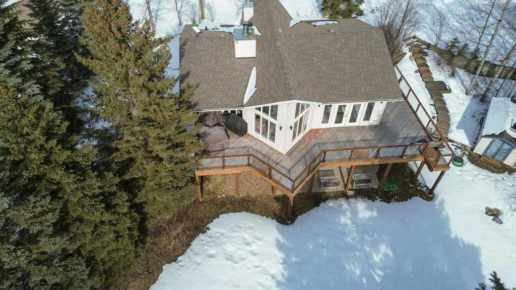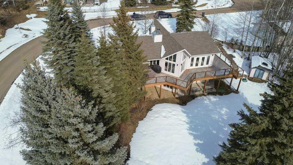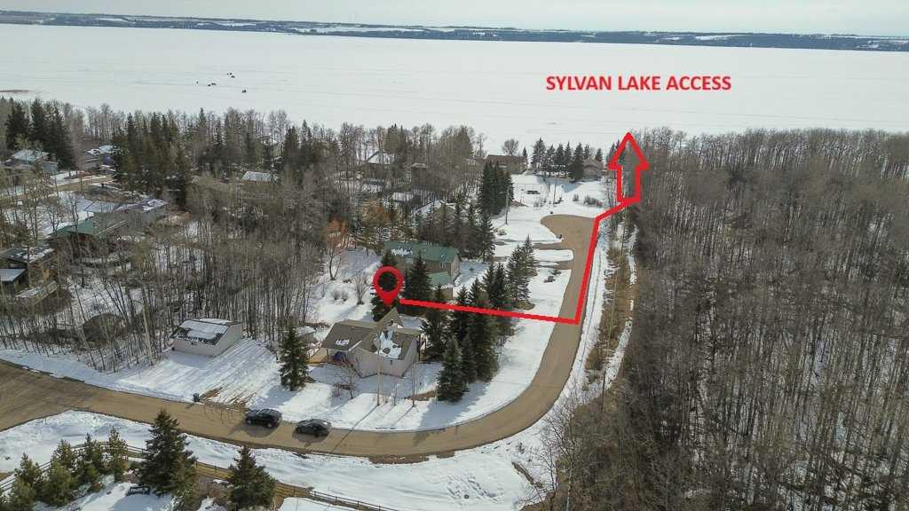 Just steps from the sunny west-facing shores of Sylvan Lake, this inviting home offers the perfect blend of comfort, space, and year-round enjoyment. Complete with the rare bonus of lake access and BOAT SLIP! Inside, soaring vaulted ceilings create a sense of openness, while expansive windows surround the living spaces, flooding the home with natural light and seamlessly bringing the outdoors inside. The large living room is anchored by the aroma of the wood burning fireplace, making it ideal to unwind after a day on the lake. The spacious kitchen features warm oak cabinetry, crisp white appliances, and a central island for additional seating. Dine inside or step out on to the massive wrap around deck and soak up the sun throughout the day. The walkout basement expands your living space with a fantastic family room. Another wood burning fireplace welcomes you with warmth to this lower level. The versatile flex space could accommodate a pool table or games area. Two generous bedrooms and 4-piece bathroom are perfect for company. Sliding glass doors lead directly to the backyard, offering easy access to the outdoor living space. The double detached garage provides plenty of indoor parking, and the large shed offers storage for yard equipment and lake toys. Whether you are looking for a weekend escape or a full-time retreat, this exceptional property offers an incredible opportunity to embrace a Life at the Lake! Furniture and Furnishings negotiable.