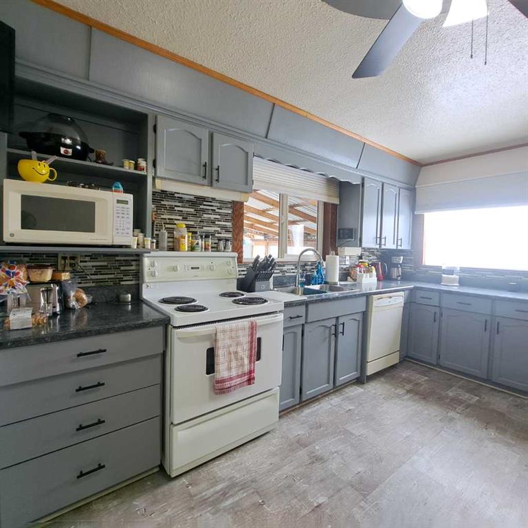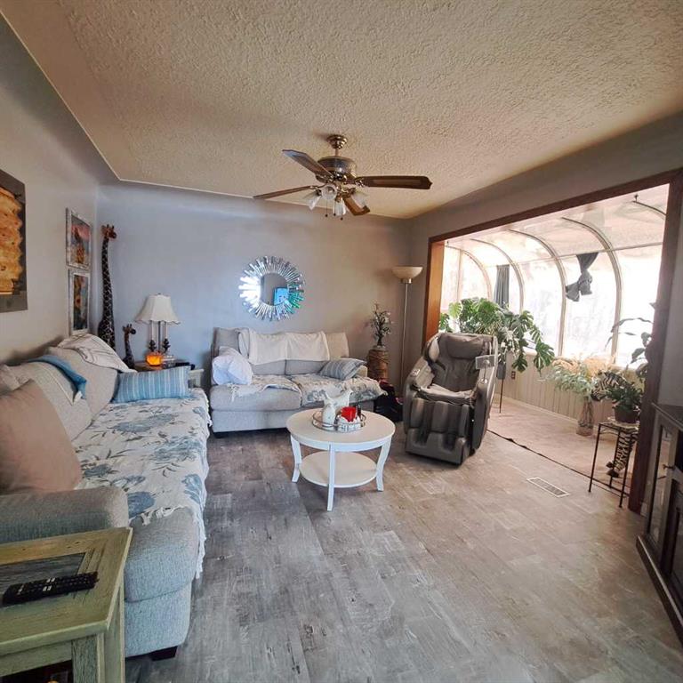 Only minutes to Lloydminster! Alberta side Acreage with 9.56 acres within 10 kms to city limits. Lloydminster School Division. This bungalow features a South facing attached solarium, spacious kitchen dining area and lots of natural lighting. 2 bedrooms up/1 down, walk out basement, separate enclosed front porch seating area with foyer access. The main level has a full bath and 1/2 bath in the basement. Features in the basement include a large family room/rec area with a gas fireplace, 1 bedroom, storage/den, large utility room/laundry and a cold storage room. This property also has a Dbl. Det garage (22\'x24\'), Barn (24\'x32\'), newer deck (approx 24\'x26\') and is mostly fenced. 2 bored wells (35\' and 38\') with ample water supply. Numerous renovations throughout include main floor bathroom, bedroom walk in closet, main level flooring, windows, deck and more! ( North of Sobey\'s 75th St/RR 12 (6.5km), West on TWP 504 (1km), North on RR13 (2 km).